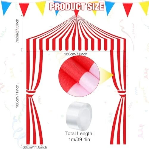 100% Money Back Guarantee if you are not satisfied with your purchase! ___________________ Description: Complete Package for Convenient Decorating: this package includes 1 circus awning decoration, 2 red and white striped carnival banners and 1 roll of double sided adhesive for easy installation; Say goodbye to additional buying; One purchase is all you need for a spectacular event Generous Size for Maximum Impact: the circus theme awning decoration measures about 71 inches in length and 27.5 inches in width, whilst the red and white striped banners each measure about 71 inches in length; Their size ensures a significant visual impact on your party setting Easy Installation and Storage: the carnival theme awning decoration and red and white stripes circus banners are easy to install thanks to the included double sided adhesive tape; Just stick the tape on the cloth, and then paste it on the wall; No need for sophisticated tools; Furthermore, they're, lightweight, foldable and washable, making them easy to store and reusable for future carnival themed parties Great for Various Occasions: whether for a birthday party, carnival themed event, or simply a gathering that needs a festive touch, these striking carnival decorations are your ideal choice; They instantly elevate the fun factor of the living room, patio or backyard, make your party wonderful and unforgettable Circus Party Decorations: these carnival party decorations are not limited to parties alone; These circus theme party decorations can enhance the look of your store, restaurant, or other public spaces; They're an easy way to add a splash of color and excitement to a carnival party, and let you have a happy time with your family and friends ________________________ 100% Money Back Guarantee: We offer 30 Day Money Back Guarantee from the day you purchased if you’re not satisfied with your product. If you have any questions about our products, please contact us as soon as possible. Customer satisfaction is our absolute priority. Shipping: We are always working hard to ensure your package arrives as soon as possible. Please understand that some factors like weather, high postal traffic, and the performance of shipping companies are outside of our control. We offer free shipping to the lower 48 states and ship within 3 business days of payment, usually sooner. We do not accept P.O. Boxes. Please provide a physical address. You will be notified via eBay messages as soon as your items ship. Delivery: We will ship out the item in 2-3 working day after receiving the payment. Usually the delivery takes 2-5 business days. If you don't receive the items after 10 days, please feel free to contact us. You will get a replacement or a full refund. Please DO NOT open a return request or leave negative feedback without asking for help . Returns (Get Free Return Label): We offer a 30-Day Return Policy on defective/wrong items or items which you are not completely satisfied with. You have the option for a full-refund or an exchange of the item. No need to buy eBay return label. Contact us via eBay messages and get free return label. Returned items must be in all of the original packaging and include all of the original accessories or items that came with it. The item and package should be in original condition. Contact Us: Any queries or issues incurred, please feel free to contact us via eBay message, we will get back to you within 24 hours. Please DO NOT open a return request or leave negative feedback without asking for help. Feedback: Your feedback is very important to us. After you get your package and you are satisfied with our service, please leave us positive feedback. We are highly appreciated for your POSITIVE feedback and 5 stars. Enjoy shopping.