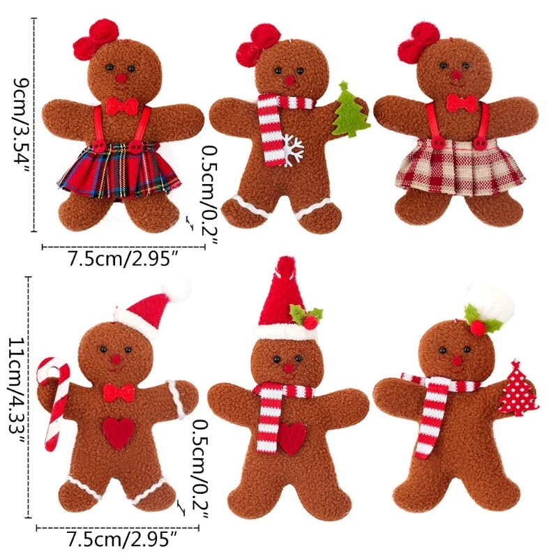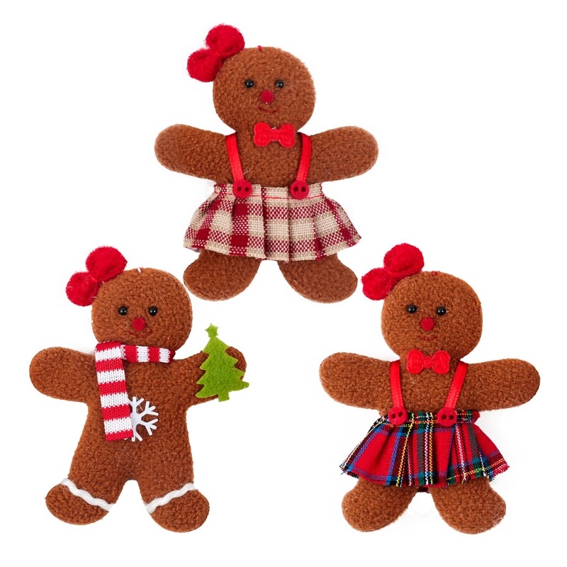 3 Pcs Christmas Gingerbread Man Ornaments for Xmas Tree Decor