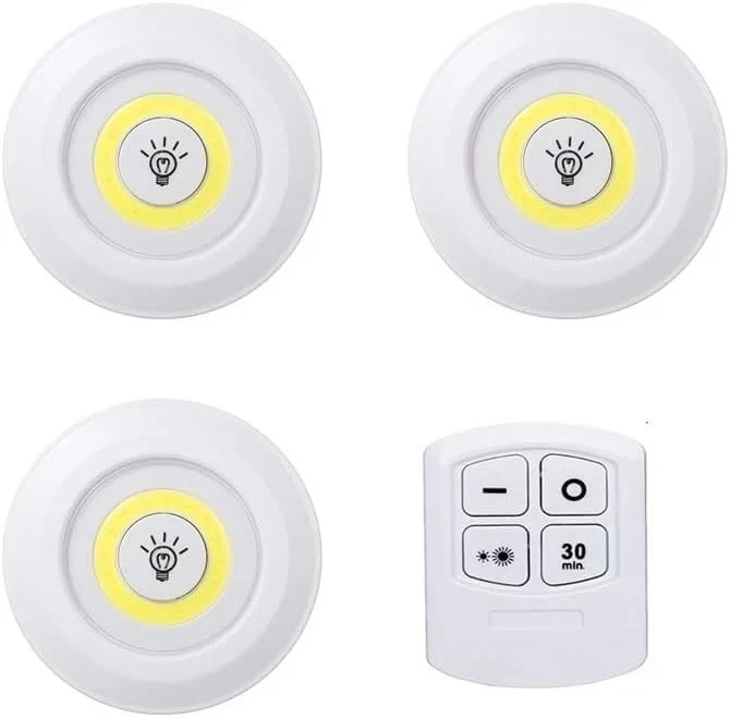 3 Pcs Circular LED Light Mini Night Lights LED Puck Portable Battery Operated Package Included: 3 Pcs Lights + 1 Pcs Control Features: Easy to install, can be installed anywhere you want to light; The remote control allows the lamp to adjust time control, turning off the light in 30 minutes wirelessly, up to 15 feet away; If you install the lamp close,you can control the lamp together. If you install the lamp has one distance,You can control a light independently You can also turn the disk light on/off by clicking the switch on the lens on the light. Suitable for kitchens, cabinets, wardrobes, counters, bookshelves, garages, basements or similar dark places where you may need to constantly have strong lighting in minutes. Specification: Material: ABS Voltage: 4.5V LED: 3W COB LED Brightness: 150 Lumens Switch Type: Tap or remote control One remote control can control many lights together Control Distance: Up to 15 feet 2 easy ways to install: easy-pasting stickers and expansion screws. Battery: Light: 3*AAA (battery not included in the product), remote control: 2*AAA (battery not included in the product) Note: Please allow slight dimension difference due to different manual measurement. Due to the shooting angle and the display, the goods may have a color difference from the picture. Thank you for your kindly understanding. Guarantee • Fast & Free Shipping on ALL Orders We believe that you should enjoy the benefit of FREE Shipping on all of your orders within the all Continental States. That's why no matter what you buy, we will ship it for FREE, so the price you see is exactly what you pay. No hidden fees or shipping charges. • Most Items Delivered in 2-6 Business Days When you're buying from us, you deserve fast and reliable service. That's why we have a "Same Business Day" processing in place and wide range of shipping options to choose from in order to deliver your package as soon as possible. *2-6 business days’ time-frame is NOT GUARANTEED and was statistically calculated based on all previous orders. • ALL Orders Placed On Business Days Before 4 PM EST Will Be Shipped Same Day Why wait a day or more for your order to ship? All orders placed before 4 pm EST, Monday to Friday, ship the SAME day. Orders placed on Friday after 4 pm EST, Saturday and Sunday will be shipped the next Monday (if business day). We are closed on all Federal Holidays. • 30 Days Money Back Guaranteed! We will gladly accept your return within 30 days of the original purchase. Please, see below for our full Returns Policy. Shipping • Most orders arrive at your door in 2-6 Business Days FOR FREE! • Place your order before 4 pm EST and it will be shipped the same day, Monday to Friday, excluding major holidays. • We will ship your order to your PayPal Verified address provided. • Please verify your address and make sure that it is your current address before making your payment. Any address change requests after your payment CANNOT be guaranteed. • We do not include invoice with our shipments. Feedback • Positive feedback is automatically done once your order is shipped. • We appreciate all our customers to post a Positive Feedback and "Five-Star" scores. • If for any reason you are not satisfied with your purchase. Please contact us via eBay Message and We will do our best to satisfy you! Payment & Cancellation • Instant PayPal payment is required. • We also accepts Visa, MasterCard, Discover, and American Express through PayPal guest checkout. • Sales tax is charged by eBay based on your shipping address. • To uphold a shipping speed, your order will be processed almost immediately. If you change your mind after your payment is confirmed, we will do our best to stop the order, however, we CANNOT guarantee the cancellation. Return • We will gladly accept your return within 30-Days of the original purchase. • Our return process is simple and fast: 1. We will pay for the return shipping label if you received a broken/defective item(s) or the item(s) doesn't match our description. As soon as we receive the item(s) back we will process a refund for the item(s)which was/were returned. 2. You will be required to pay for the return shipping label if you changed your mind or no longer need the item(s). As soon as we receive the item(s) back we will process a refund for the item(s) which was/were returned. • If we'll receive a package back because of the incorrect address, the refund will be processed excluding our shipping cost. Contact Us • Send us a message on eBay and we will answer within 24h on business days.