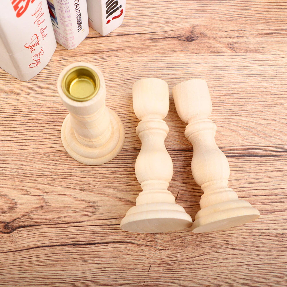 3 Pcs Home Decorations Living Room Diy Wood Crafts Wooden Candlestick