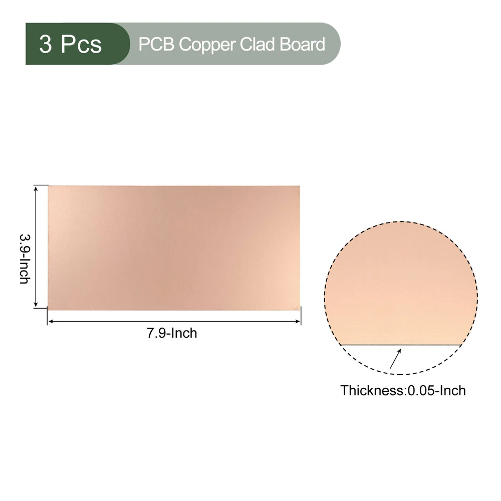 Document MULTIPURPOSE - Our blank circuit boards are great for your various electronic hobbies, such as etching, making models, testing, circuit projects, etc.WHAT YOU GET - The package comes with 3 Pcs copper clad board that measures 200mmx100mmx1.2mm(L*W*H).RELIABLE MATERIAL - The PCB board is made of FR4 glass fiber, copper-plated surface, durable and stable, with good adhesion of the copper to the fiberglass (no peeling or chipping).SPECIAL DESIGNED - The blank PCB is specially designed for making your own PCB circuit boards or making signs for your business.KINDLY NOTE - The boards may come with surface marks or scratches but don't affect performance. 3 Pcs PCB Copper Clad Board, Single-Sided Circuit Boards (200mmx100mmx1.2mm) MULTIPURPOSE - Our blank circuit boards are great for your various electronic hobbies, such as etching, making models, testing, circuit projects, etc. WHAT YOU GET - The package comes with 3 Pcs copper clad board that measures 200mmx100mmx1.2mm(L*W*H). RELIABLE MATERIAL - The PCB board is made of FR4 glass fiber, copper-plated surface, durable and stable, with good adhesion of the copper to the fiberglass (no peeling or chipping). SPECIAL DESIGNED - The blank PCB is specially designed for making your own PCB circuit boards or making signs for your business. KINDLY NOTE - The boards may come with surface marks or scratches but don't affect performance. Hot Item Payment 1.We accept eBay payment . 2.Payment must be received within 7 business days of auction closing. Shipping 1.We ship to your eBay or Paypal address. Please make sure your eBay and Paypal address is correct before you pay. 2.Items will be shipped within 1-3 business day when we received payment. 3.Delivery time depends on destination and other factors. Description Policy 3 Pcs PCB Copper Clad Board, Single-Sided Circuit Boards (200mmx100mmx1.2mm) MULTIPURPOSE - Our blank circuit boards are great for your various electronic hobbies, such as etching, making models, testing, circuit projects, etc. WHAT YOU GET - The package comes with 3 Pcs copper clad board that measures 200mmx100mmx1.2mm(L*W*H). RELIABLE MATERIAL - The PCB board is made of FR4 glass fiber, copper-plated surface, durable and stable, with good adhesion of the copper to the fiberglass (no peeling or chipping). SPECIAL DESIGNED - The blank PCB is specially designed for making your own PCB circuit boards or making signs for your business. KINDLY NOTE - The boards may come with surface marks or scratches but don't affect performance. Hot Item Payment 1.We accept eBay payment . 2.Payment must be received within 7 business days of auction closing. Shipping 1.We ship to your eBay or Paypal address. Please make sure your eBay and Paypal address is correct before you pay. 2.Items will be shipped within 1-3 business day when we received payment. 3.Delivery time depends on destination and other factors.