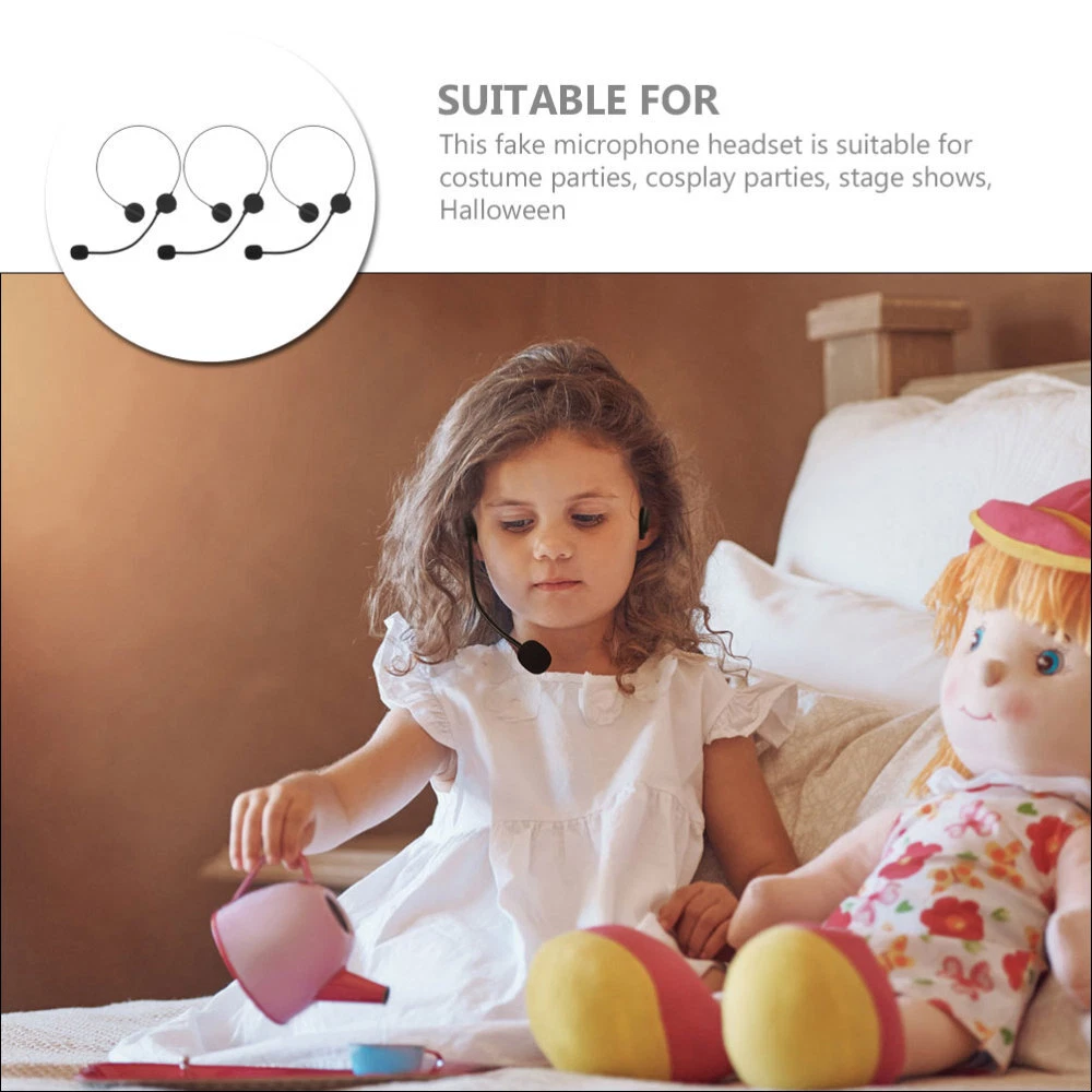 3 Pcs Singer Microphone Costume Fake Headset Headphone Props Cosplay Toy Child