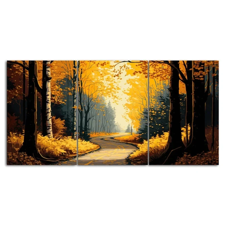 3 Pcs Yellow Forest Pathway Painting Style Canvas Wall Art Unframed Modern Home