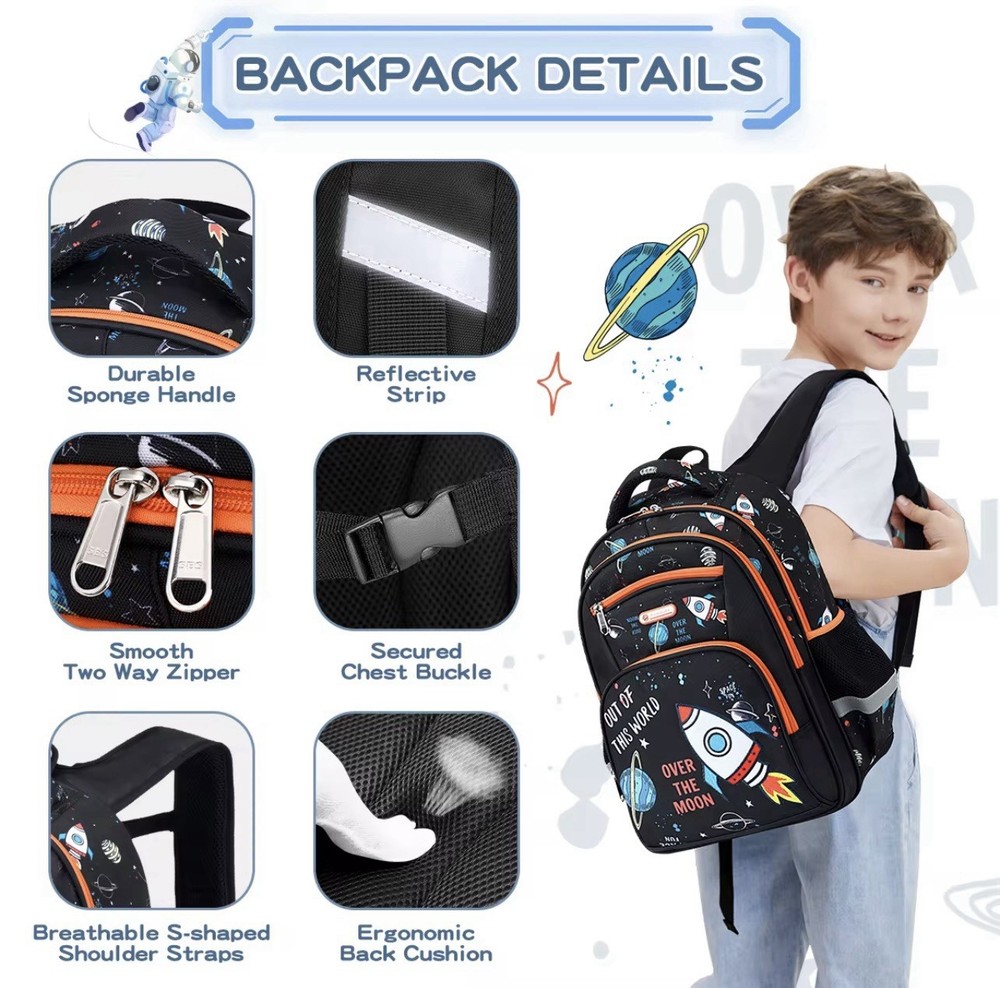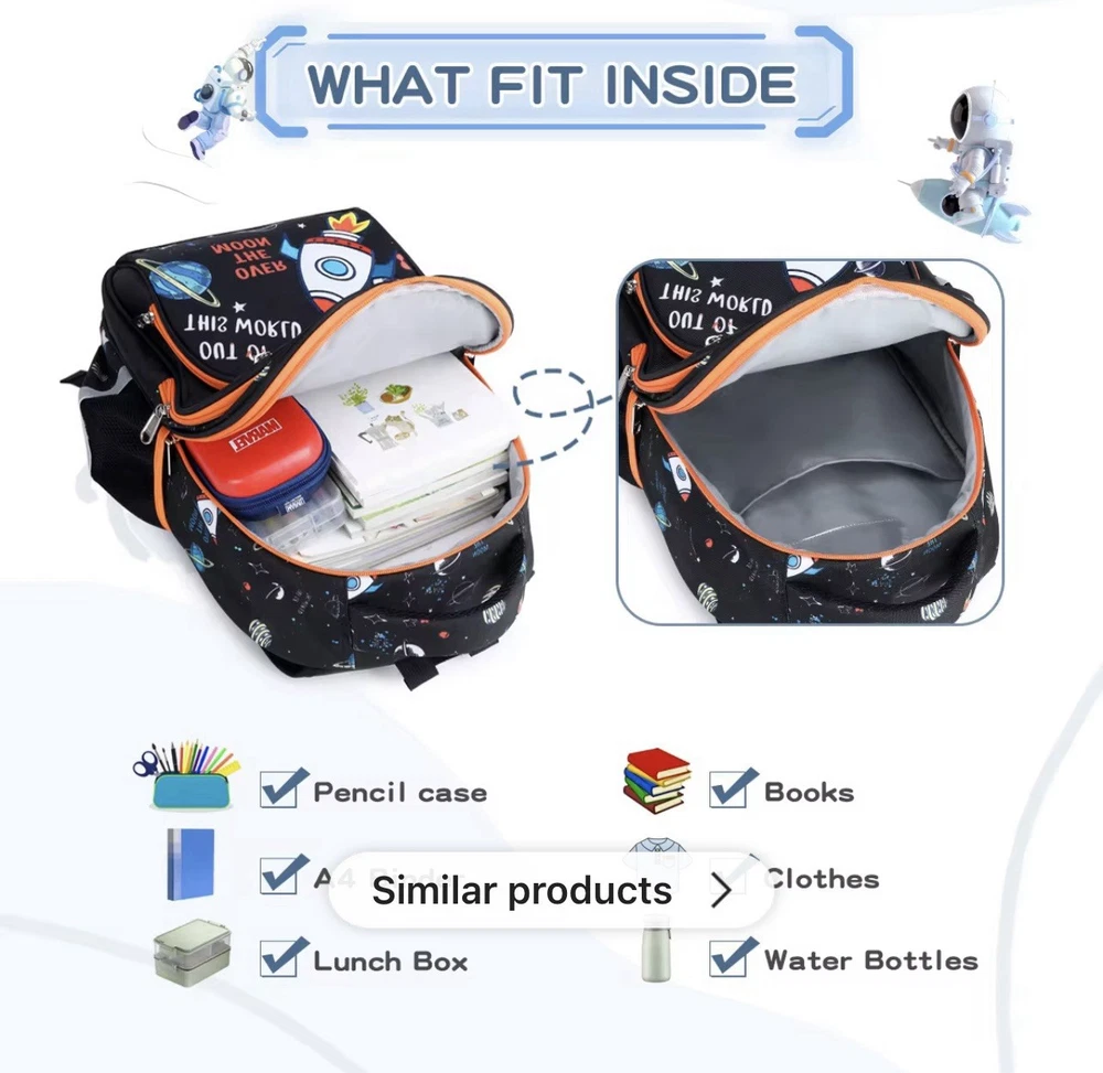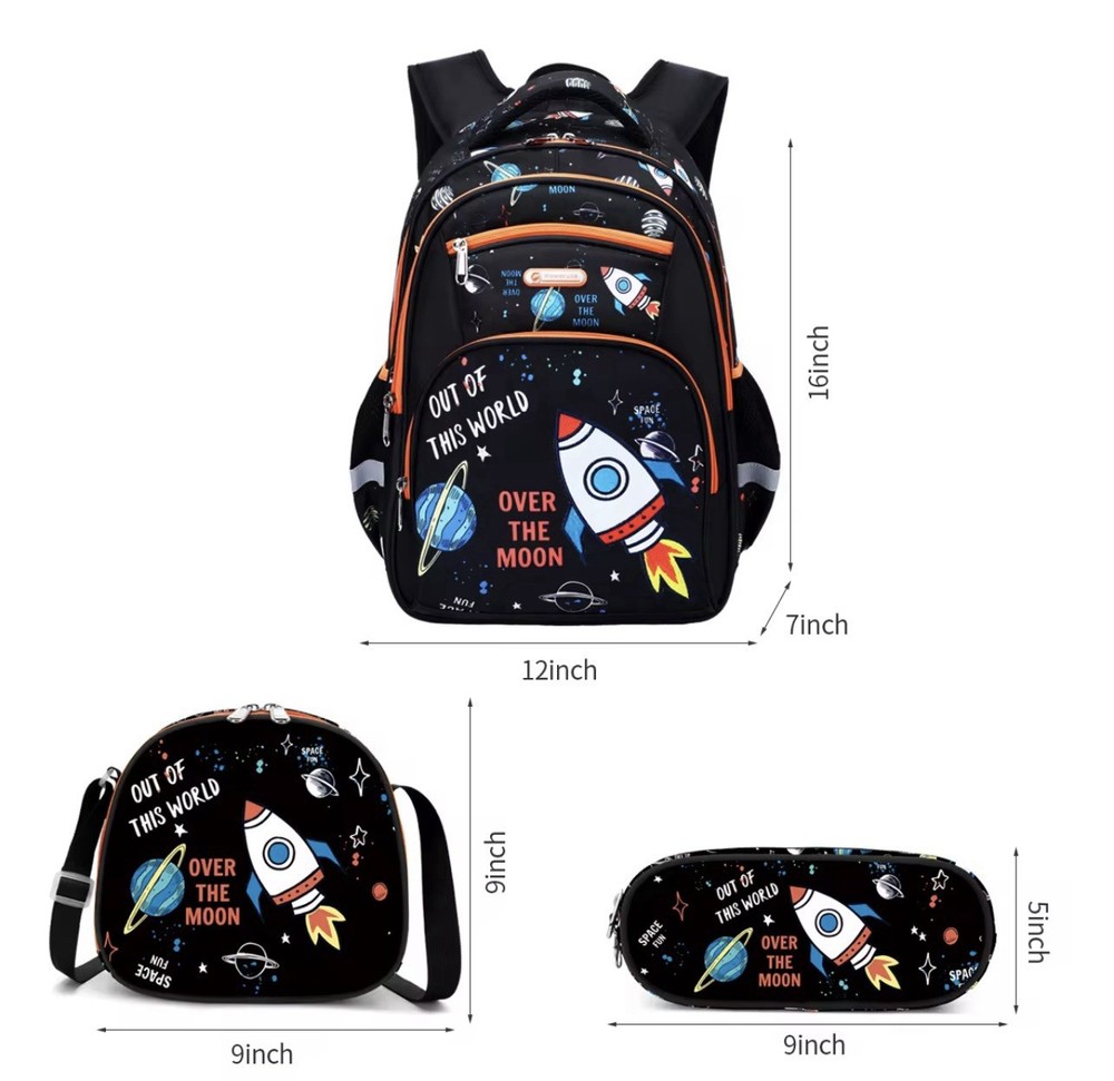 Kids 3PC Space Backpack Set – Astronaut School Bag with Lunch Box & Pencil Case