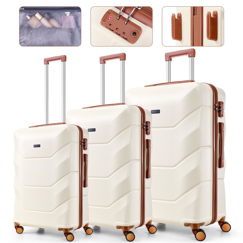 Description 3-Piece Luggage Set with Spinner Wheels, Durable Carry On Suitcase Luggage with TSA Lock, Portable Lightweight ABS Luggages for Travel 🧳Key Features: Advanced Security & Organization -TSA-approved combination locks on all luggage sets -Wet&dry separation compartment design -Multiple organizational pockets - Heavy-duty reinforced zippers Superior Durability -High-quality ABS suitcase material -Modern Refined Textured design -Impact-resistant exterior -Lightweight yet highly durable Premium Mobility Features - 8 shock-absorbing spinner wheels -360° multi-directional rotation -Smooth-gliding carry on suitcase wheel system -Enhanced luggage stability and control Ergonomic Design -3-step adjustable suitcase telescopic handle -Soft rubber comfort and finger protection handle -Space-saving handle system Full-Size Luggage Collection -Premium set includes: 20" carry-on, 24" medium, 28" large luggage -Perfect for family travel or extended trips 🧳 Luggage Sets 3 Piece Details: Size: 20/24/28 inch Pattern: Smooth Textured/ Refined Textured Luggage Sets Color: Black/White/Dark Blue/Beige Luggage Sets suit for: Unisex Design for Modern Travelers 3 Adjustable Carry on Luggage Handle Heights: 33in/37in/41in Weight: 10lb Capacity: 35L/61L/93L Suitcase with Wheels: 360° Rotatable Silent Spinner Wheels Telescopic Handle Material: Aluminum 🧳Luggage Sets TSA Approved Lock Instruction: Step 1: Set dials to 0-0-0; Step 2: Press reset button until "click"; Step 3: Turn dials to set new password; Step 4: Push button in arrow direction until "click". 🧳Luggage Sets Size/Weight: 20'': 13.8''L*8.7''W*21.3''H / 6.10lb 24'': 15.7''L*10.2''W*25.2''H / 8.09lb 28'': 18.5''L*11.8''W''*29.1''H / 9.85lb 🧳Luggage Sets Q&A : Q1: How do the 360-degree spinner wheels perform on rough surfaces? A1: The 8 shock-absorbing wheels provide smooth, quiet rolling on various surfaces - from airport terminals to cobblestones, making your travel experience hassle-free. Q2: Can this hardside luggage sets nest for storage? A2: Yes, these expandable suitcases are designed to nest - the carry-on fits inside the medium, which fits inside the large checked bag, saving significant storage space. Q3: Is the telescoping handle system sturdy for both tall and short travelers? A3: Yes, with three adjustable heights and an ergonomic aluminum design, the handle system accommodates different heights while remaining durable for long-term use. Q4: How durable is this hardshell luggage for international travel? A4: Constructed with 100% premium ABS material, reinforced zippers, and TSA locks, this durable luggage set withstands frequent travel while maintaining its lightweight characteristics. Payment 1 . We accept PayPal only. 2 . Payment should be completed within 4 (Four) days of auction closing. Or unpaid dispute will be filed for closing auction. 3 . Sales Tax of 9% will be applied for orders shipped within the state of California 4 . We will leave a positive feedback immediately after payment is received. We appreciate a positive feedback as much as you do. If for some reason there is any issue with the purchase, please contact us prior to leaving feedback, and we will be glad to work with you to have it resolved. Shipping 1 . We Ship to United States ONLY. 2 . Ship from two warehouses and only to eBay ADDRESS. Package handling only takes 1 business day at our warehouse, so please make sure entering correct payment and shipping information before checking out. Once your payment is completed, pls leave ebay note if the changes are needed before we send the product. 3 . Truck company: 3-8 business days. | USPS: 2-6 business days. | UPS/FEDEX: 3-5 business days. 4 . Lccal pick up is available. Warranty and Guarantee 1 . All of our items come with a 30-day return policy. We ensure all our items are new and in excellent condition prior to shipping. In the event that you receive the item that is not to the standards above, please contact us via e-Bay messages. All returns must be in new original condition as received and should be shipped with delivery confirmation 2 . We ONLY accept the return for original package. Please make sure that item has NO man-made sabotage. Used items will not be accepted for return. 3 . We reserve the right to refuse any returns for objective reasons. 4 . All NON-seller mistake returns for refund are subject to 20% re-stocking fee and buyer should pay for the round-trip shipping fee. (E.g. you bought wrong model or wrong color). Feadback 1 .Any problem after receiving our goods,please contact us before leaving Neutral/Negative feedback.We promise to help you solve it asap,and make you feel satisfactory absolutely. 2 . Please DO NOT leave negative feedback without asking for help. Please do not leave negative or neutral feedback if you haven't received item in 30 days, because we have mentioned the shipping time repeatedly.
