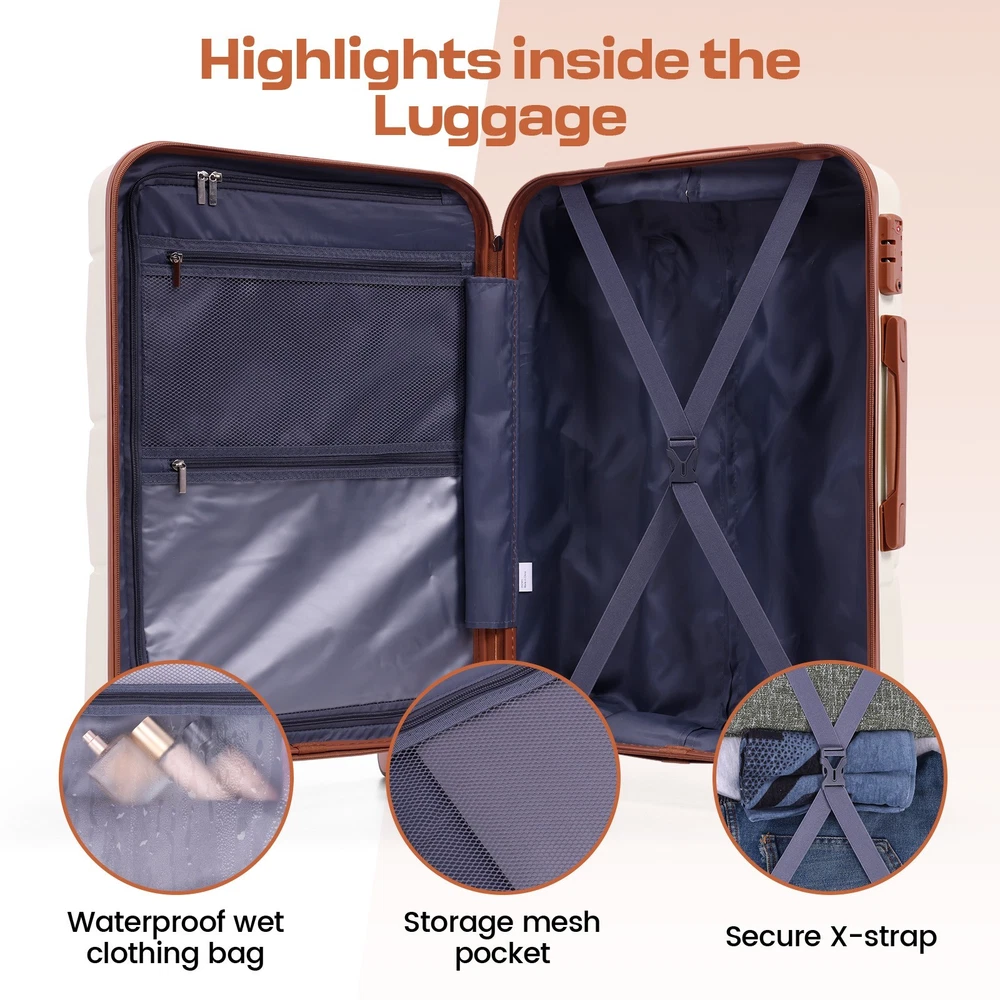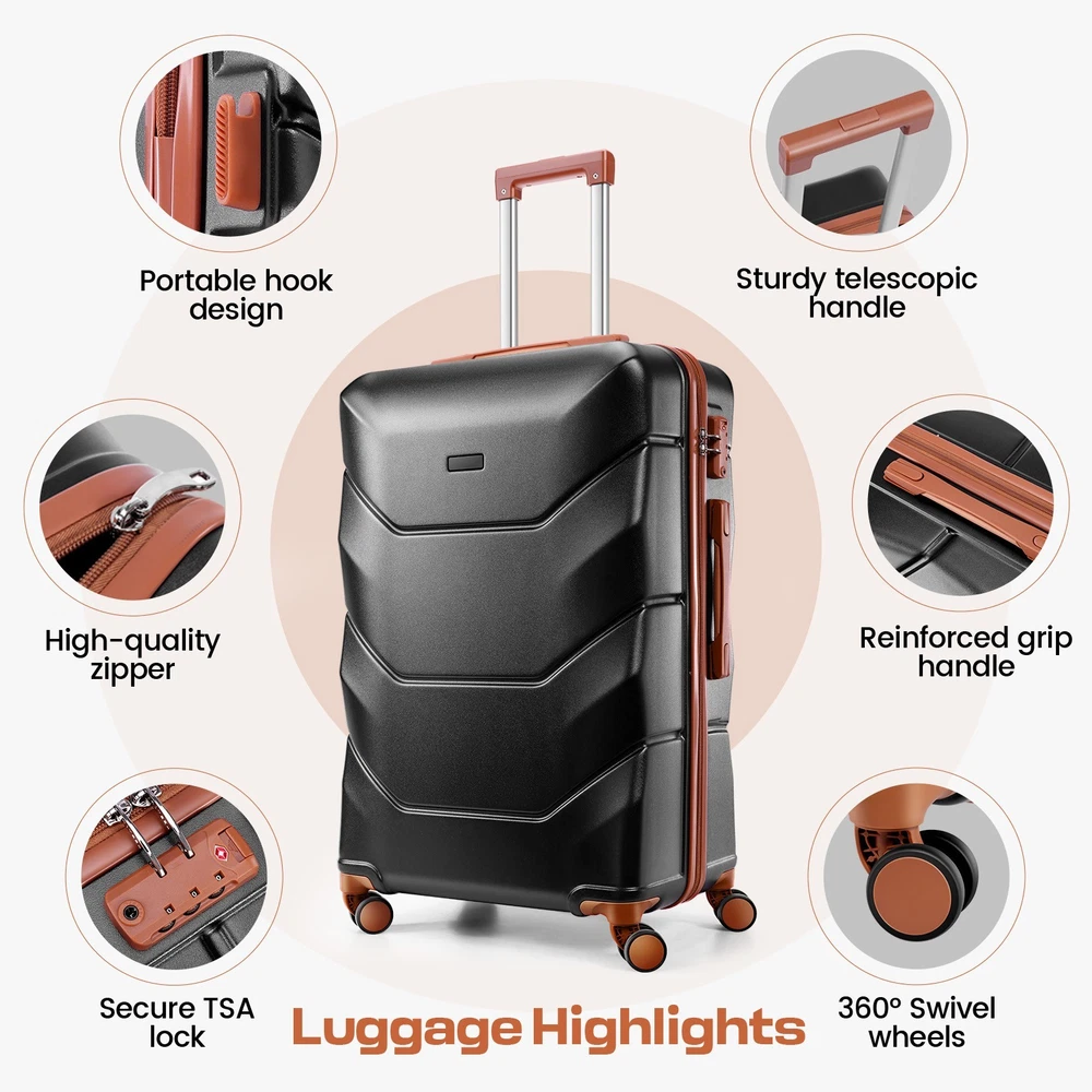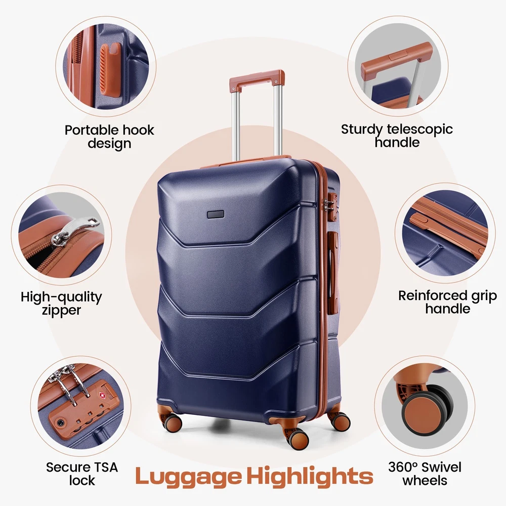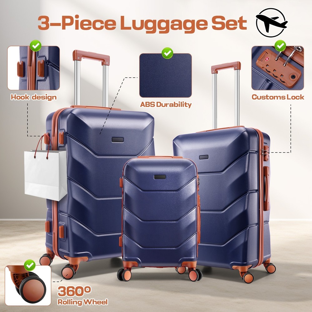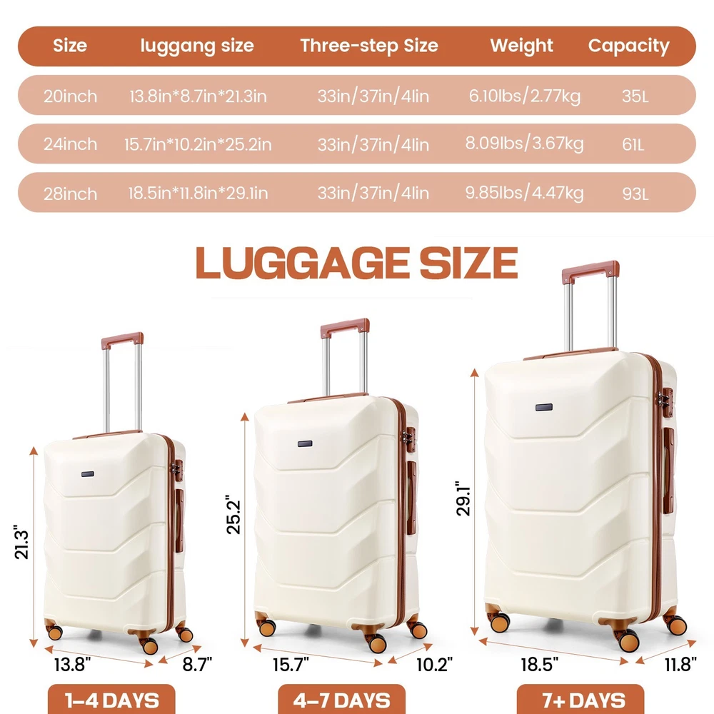 Description 3-Piece Luggage Set with Spinner Wheels, Durable Carry On Suitcase Luggage with TSA Lock, Portable Lightweight ABS Luggages for Travel 🧳Key Features: Advanced Security & Organization -TSA-approved combination locks on all luggage sets -Wet&dry separation compartment design -Multiple organizational pockets - Heavy-duty reinforced zippers Superior Durability -High-quality ABS suitcase material -Modern Refined Textured design -Impact-resistant exterior -Lightweight yet highly durable Premium Mobility Features - 8 shock-absorbing spinner wheels -360° multi-directional rotation -Smooth-gliding carry on suitcase wheel system -Enhanced luggage stability and control Ergonomic Design -3-step adjustable suitcase telescopic handle -Soft rubber comfort and finger protection handle -Space-saving handle system Full-Size Luggage Collection -Premium set includes: 20" carry-on, 24" medium, 28" large luggage -Perfect for family travel or extended trips 🧳 Luggage Sets 3 Piece Details: Size: 20/24/28 inch Pattern: Smooth Textured/ Refined Textured Luggage Sets Color: Black/White/Dark Blue/Beige Luggage Sets suit for: Unisex Design for Modern Travelers 3 Adjustable Carry on Luggage Handle Heights: 33in/37in/41in Weight: 10lb Capacity: 35L/61L/93L Suitcase with Wheels: 360° Rotatable Silent Spinner Wheels Telescopic Handle Material: Aluminum 🧳Luggage Sets TSA Approved Lock Instruction: Step 1: Set dials to 0-0-0; Step 2: Press reset button until "click"; Step 3: Turn dials to set new password; Step 4: Push button in arrow direction until "click". 🧳Luggage Sets Size/Weight: 20'': 13.8''L*8.7''W*21.3''H / 6.10lb 24'': 15.7''L*10.2''W*25.2''H / 8.09lb 28'': 18.5''L*11.8''W''*29.1''H / 9.85lb 🧳Luggage Sets Q&A : Q1: How do the 360-degree spinner wheels perform on rough surfaces? A1: The 8 shock-absorbing wheels provide smooth, quiet rolling on various surfaces - from airport terminals to cobblestones, making your travel experience hassle-free. Q2: Can this hardside luggage sets nest for storage? A2: Yes, these expandable suitcases are designed to nest - the carry-on fits inside the medium, which fits inside the large checked bag, saving significant storage space. Q3: Is the telescoping handle system sturdy for both tall and short travelers? A3: Yes, with three adjustable heights and an ergonomic aluminum design, the handle system accommodates different heights while remaining durable for long-term use. Q4: How durable is this hardshell luggage for international travel? A4: Constructed with 100% premium ABS material, reinforced zippers, and TSA locks, this durable luggage set withstands frequent travel while maintaining its lightweight characteristics. Payment 1 . We accept PayPal only. 2 . Payment should be completed within 4 (Four) days of auction closing. Or unpaid dispute will be filed for closing auction. 3 . Sales Tax of 9% will be applied for orders shipped within the state of California 4 . We will leave a positive feedback immediately after payment is received. We appreciate a positive feedback as much as you do. If for some reason there is any issue with the purchase, please contact us prior to leaving feedback, and we will be glad to work with you to have it resolved. Shipping 1 . We Ship to United States ONLY. 2 . Ship from two warehouses and only to eBay ADDRESS. Package handling only takes 1 business day at our warehouse, so please make sure entering correct payment and shipping information before checking out. Once your payment is completed, pls leave ebay note if the changes are needed before we send the product. 3 . Truck company: 3-8 business days. | USPS: 2-6 business days. | UPS/FEDEX: 3-5 business days. 4 . Lccal pick up is available. Warranty and Guarantee 1 . All of our items come with a 30-day return policy. We ensure all our items are new and in excellent condition prior to shipping. In the event that you receive the item that is not to the standards above, please contact us via e-Bay messages. All returns must be in new original condition as received and should be shipped with delivery confirmation 2 . We ONLY accept the return for original package. Please make sure that item has NO man-made sabotage. Used items will not be accepted for return. 3 . We reserve the right to refuse any returns for objective reasons. 4 . All NON-seller mistake returns for refund are subject to 20% re-stocking fee and buyer should pay for the round-trip shipping fee. (E.g. you bought wrong model or wrong color). Feadback 1 .Any problem after receiving our goods,please contact us before leaving Neutral/Negative feedback.We promise to help you solve it asap,and make you feel satisfactory absolutely. 2 . Please DO NOT leave negative feedback without asking for help. Please do not leave negative or neutral feedback if you haven't received item in 30 days, because we have mentioned the shipping time repeatedly.