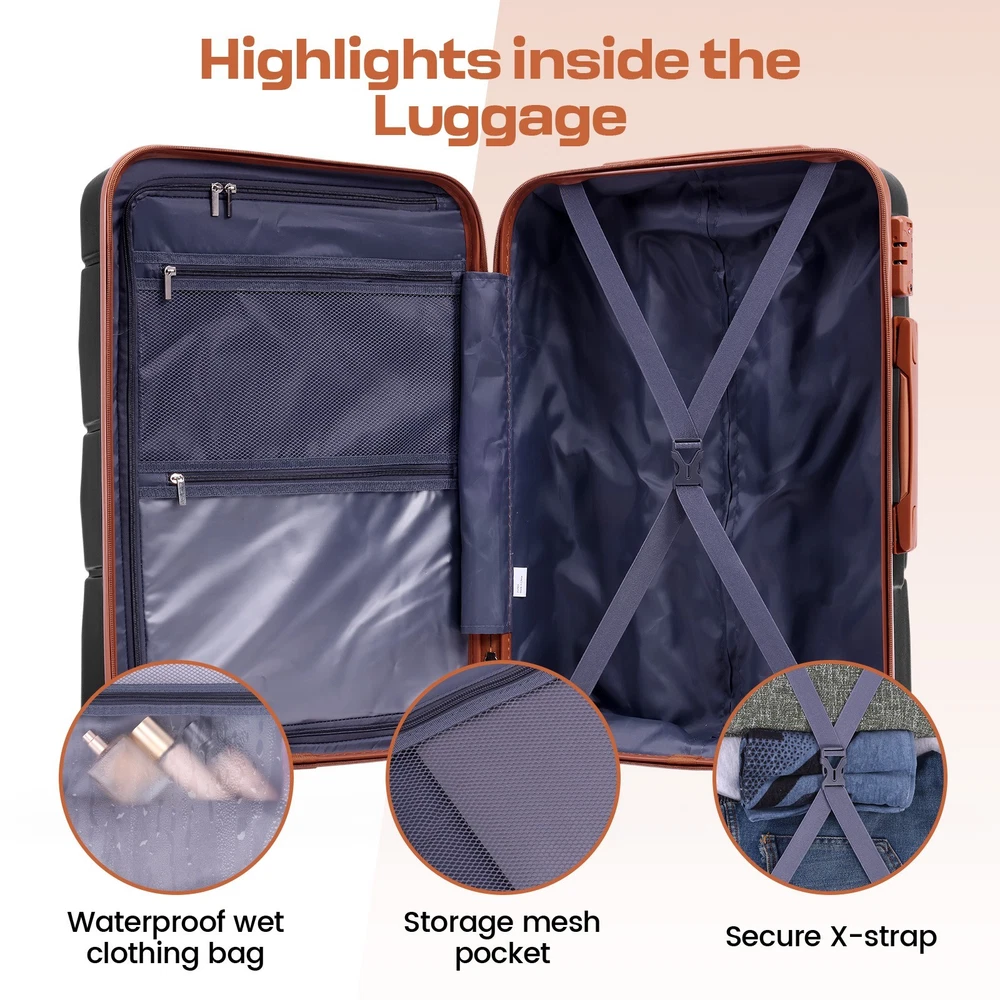 Luggage Sets 5/3 Piece, Suitcases with Wheels, ABS+PC Hardshell Suitcase Set\US