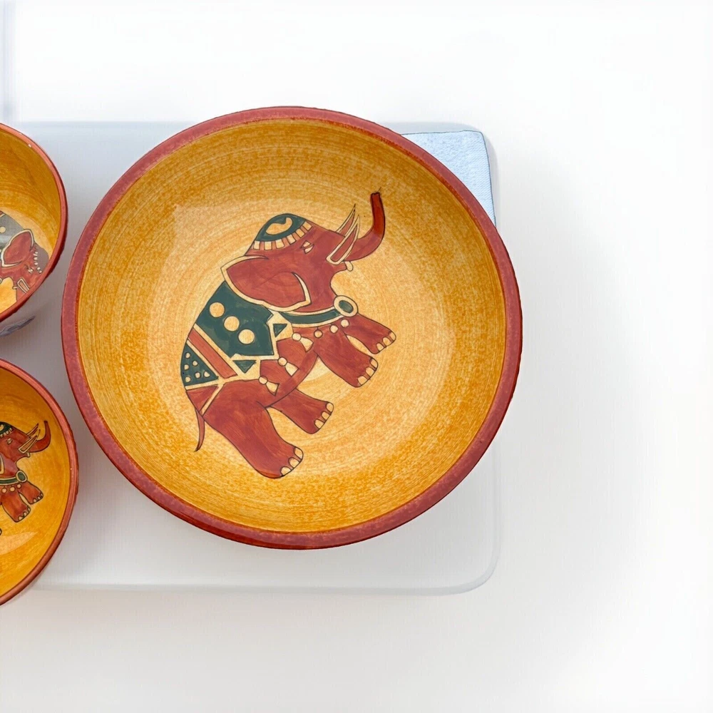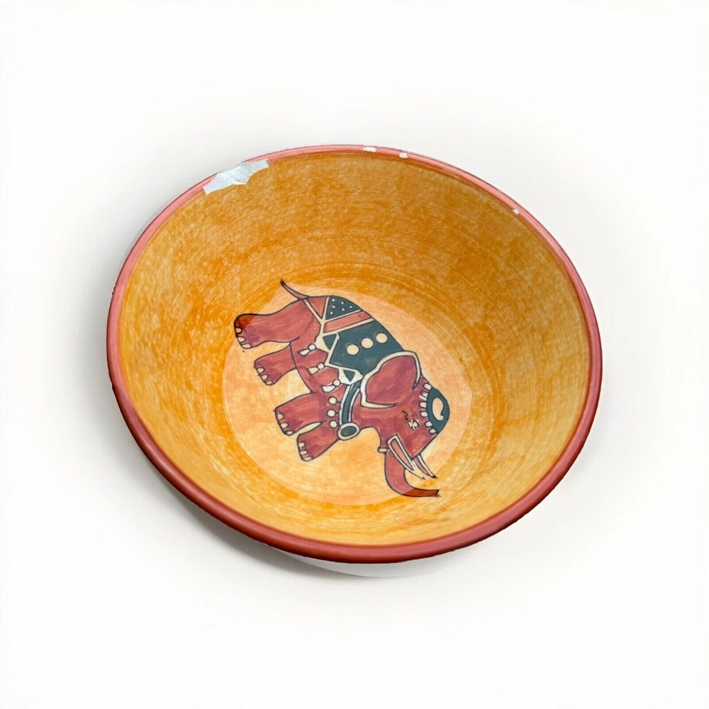 This 3-piece Pier 1 serving bowl set features an elephant theme and includes a pasta bowl and individual bowls. Made of ceramic, the serving bowl is 11.25" wide and 2-5/8" tall, while the individual bowls are 5-7/8" wide and 2.75" tall. The pasta bowl is 2.25" deep, and the individual bowls are 2.5" deep. The set weighs 5 lbs 9 oz and should be hand washed. Shipped with USPS Ground Advantage.