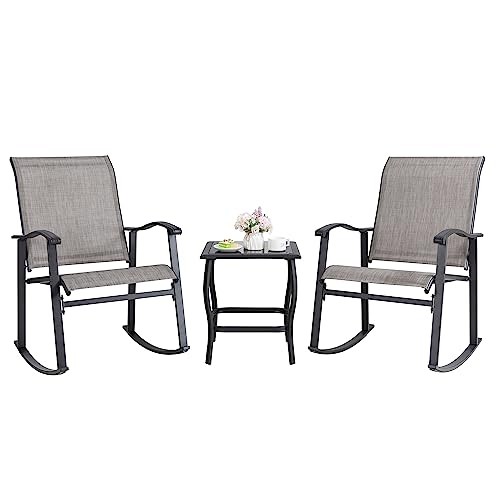 3 Piece Rocking Bistro Set, Outdoor Furniture with Rocker Chairs Taupe Gray