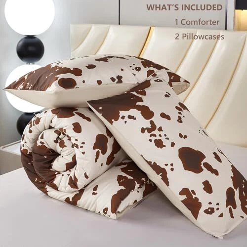 Return Policy Fast Delivery Trusted seller 3 Pieces Cow Print Queen Comforter Set, Brown and Beige Teens Boys Girls Bedding Set, Farmhouse Western Comforter Set for Queen Size Bed (Beige,Queen) Product Description Queen bedding sets includes 3 pieces in total: 1x comforter: 90"x90", 2x envelope pillowcases: 20"x30"; this western cow comforter is suitalbe for a queen size bed Material: cow print brown beige bedding set is made of microfiber polyester, which is lightweight, durable and breathable, giving you the soft and cozy touch feeling, keeps you comfortable all through the night Cute and lovely design: western cowhide print comforter set, with brown beige color and lifelike patterns creating a visual spectacle, add a touch of nature-inspired beauty and elegant artistic atmosp to your bedroom Easy Care: twin size western comforter set is machine washable; machine wash in cold water with gentle cycle, tumble dry at low temperature, do not bleach, do not soak Warm Tips: this cow print bedding comforter set is in a sealed package, it might be some wrinkles after you got it; it is recommended to dry it in the sun, and gently tap to make it fluffy Shipping Returns Payment Shipping Shipping is FREE to all addresses other than APO/PO boxes in the lower 48 states. All our stock ships from US-based warehouses. Shipped via USPS or UPS (depending on location and package weight) Unless stated otherwise, all orders will ship within 24-72 hours of your payment being processed. Check our feedback to see the great reviews of FAST shipping we offer. Returns Seller does not accept returns Payment We currently accept payment via eBay managed payments only. Once payment is cleared, we will dispatch your shipment within 1-3 business days. Please refer to the "Shipping" tab for more information regarding shipping speed to your destination.