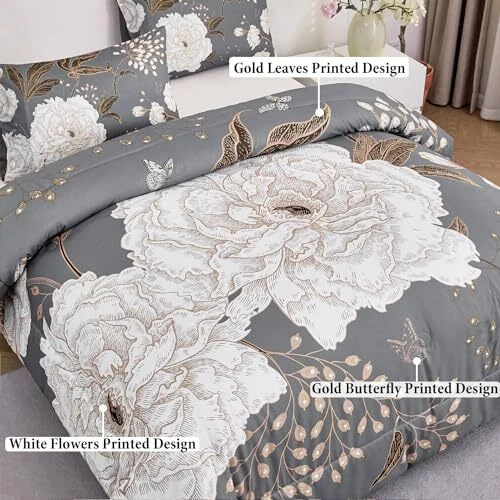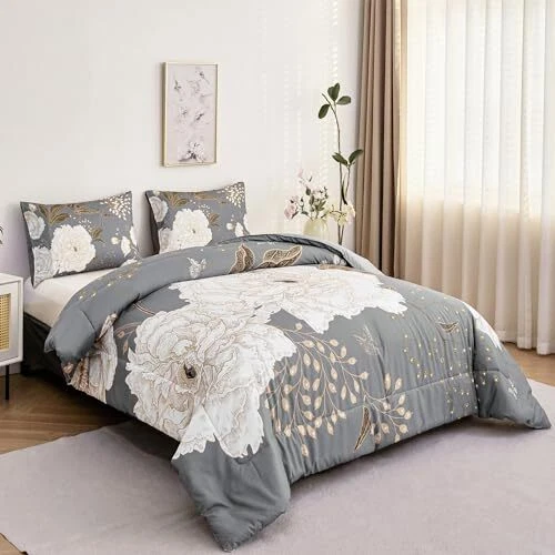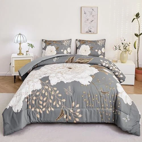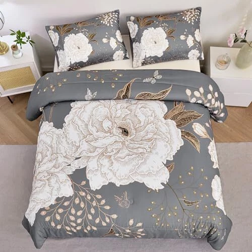 Return Policy Fast Delivery Trusted seller 3 Pieces Floral Print Bedding Set Queen White Flowers Botanical Bedding Comforter Set Butterfly and Gold Leaves Printed Dark Grey Comforter Set for Women Men Product Description Soft and Comfortable Fabric: The floral printed queen bed set uses high-quality polyester fabric, soft and comfortable to the touch, with good air permeability and warmth, so that you can enjoy a good sleep in a comfortable environment. Floral Design Style: With a floral theme, the 3 pcs queen comforter set gray uses fresh and elegant white flowers and gold leaves butterfly prints to create a romantic and warm style that will bring unique visual enjoyment to your bedroom. Queen Size Floral Comforter Set Gray Including: 1x Floral Printed Comforter 90"x90", 2x Pillowcases 20"x26". GOOD CHOICE AS A GIFT: Floral bedding set blue is used by everyone, practical, full of happiness and warmth, everyone will be very happy and joyful after receiving it. Perfect gifts at any holidays for your loved ones, such as parents, friends, boys, girls, men, women. Washable durability: Polyester fabric comforter has good washable durability and durability, even if it is washed frequently, it can keep new, so that your home environment is more tidy and beautiful. Shipping Returns Payment Shipping Shipping is FREE to all addresses other than APO/PO boxes in the lower 48 states. All our stock ships from US-based warehouses. Shipped via USPS or UPS (depending on location and package weight) Unless stated otherwise, all orders will ship within 24-72 hours of your payment being processed. Check our feedback to see the great reviews of FAST shipping we offer. Returns Seller does not accept returns Payment We currently accept payment via eBay managed payments only. Once payment is cleared, we will dispatch your shipment within 1-3 business days. Please refer to the "Shipping" tab for more information regarding shipping speed to your destination.