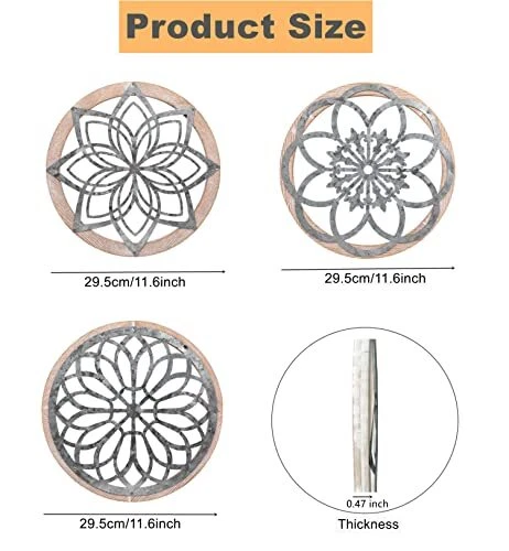 30 Days Return Policy Fast Delivery Trusted seller 3 Pieces Thicken Farmhouse Wall Decor Rustic Wood Round Wall Art Hanging Decoration for Living Room Bedroom Home Indoor Outdoor Office Apartment Size 11.8 * 11.8in Product Description ✅【Farmhouse Wall Decor】: You will receive 3 farmhouse wall decor, beautifully shaped and made into 3 different unique patterns by intricate and intricate 3D hollow carving techniques, suitable for the decorative needs of any space. Total dimensions including iron and wood framing: 11.6 inch in diameter, the same size for all three farmhouse wall decor. ✅【High Quality Material, Durable and Rustproof】: These farmhouse wall decor are made of light wood on the outer ring and iron on the inner ring, wear-resistant, anti-rust, anti-corrosion, light and beautiful, odorless and smooth, non-fading, non-breaking , It can be reused for a long time, the engraved pattern is clear, and it can be decorated indoors and outdoors. ✅【Quality Assurance】:We treat every decoration with great care. The traditional and exquisite cutting process ensures that every piece of iron is of high quality, no rust, no fading, and no scratches on your hands. Quality is supreme, and the thickness of the decoration is 1.5cm/ 0.6inch, safe and sturdy, not easy to break, bring long-lasting decoration to your home. ✅【Easy to Install, DIY Interests】: The back of the rustic wall decor has zigzag hooks, equipped with four non-marking nails, easy to install and hang on the wall, hang or take off without damaging and scratching the place w you need to decorate, it can also be convenient at any time We clean. Our rustic wall decor can be combined or separated in any way, and additional decorations can be added to give full play to your imagination and create more possibilities ✅【Wide Applications】: Farmhouse home decor adds some unique rustic and modern artistic sense to your house decoration, suitable for decorating living room, bedroom, garden, office, fireplace, bathroom, kitchen, entrance, stairs, etc., bringing A beautiful landscape to your space. Can also be used for theme parties, shop windows, hotels, beach restaurants or bars. ✅【Excellent Gift】: Rustic wall decor are perfect for sharing with your friends, family, lovers, neighbors at Christmas, housewarming, weddings, anniversaries, birthday parties, thanksgiving parties and other holiday celebrations, they will Love this wonderful gift. Shipping Returns Payment Shipping Shipping is FREE to all addresses other than APO/PO boxes in the lower 48 states. All our stock ships from US-based warehouses. Shipped via USPS or UPS (depending on location and package weight) Unless stated otherwise, all orders will ship within 24-72 hours of your payment being processed. Check our feedback to see the great reviews of FAST shipping we offer. Returns As our valued customer, we will do our best to make sure the product you receive arrives to you on time and as expected. If you are not satisfied with your purchase, please contact us within 30 days of receiving your order to process a return. Payment We currently accept payment via eBay managed payments only. Once payment is cleared, we will dispatch your shipment within 1-3 business days. Please refer to the "Shipping" tab for more information regarding shipping speed to your destination.