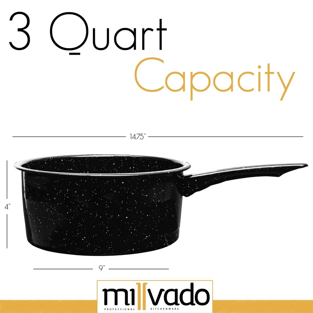 3 Quart Granite Saucepan, Naturally Nonstick Sauce Pots, Speckled Enamel Ware Cookware, Small Sauce Pan for Cooking and Boiling - Granite Cooking Pot for Stovetop, Campfire, Outdoor Stove FAST AND EVEN HEATING: Lightweight yet durable, this pot heats up quickly and distributes that heat well, perfect for when you want to boil milk, cook an egg, or warm up some soup in no time. Even heating and large 3 quart capacity make this pot great for preparing big batches of sauces and candies, too. NATURALLY NONSTICK: Our sauce pans are carefully crafted with a core of carbon steel, then covered on the inside and outside with a layer of natural enamel. With these speckled stoneware pots, you get the benefits of non stick cookware without having to worry about chemicals! Does not react to acidic foods, either. SUITABLE FOR OUTDOOR USE: This mid-sized enamelware boiling pot works great on outdoor stoves, camp stoves, grills, and open fires. It's lightweight and small and easy to carry in a backpack - perfect for camping! Be sure to bring along a potholder, too, as the handles do get hot. HEALTHY COOKING: Nonstick pots are 100% natural and chemical-free, so you don't have to worry about nasty stuff going into your food. Plus, your enamel pot will not stain or retain flavors or odors from previous cooking sessions. DISHWASHER SAFE: When you are finished cooking, just toss your medium nonstick saucepan into the dishwasher and let the machine work its magic. If you prefer to hand wash, simply wipe down with a paper towel and rinse under warm, soapy water. Wipe dry. If you are looking for a non-stick pan that cooks your food quickly and efficiently, then this pot from is exactly what you need. It is constructed with a carbon steel core that is then coated inside and outside with a layer of durable enamel. Steel conducts heat quickly and evenly, and the speckled enamel coating prevents adhesion during cooking. Plus, there are no harmful chemicals to worry about - this pot is made from 100% natural materials. This small saucepan is the perfect size for reheating a soup, boiling an egg, cooking lentils or oatmeal, or making a small batch of sauce or syrup. Dishwasher safe for super simple cleaning. It's also a great camping pot; it's small and lightweight, so it's easy to carry in a backpack, and it works great on camping stoves or open fires. Make this pot yours today! Shipping We offer FREE shipping on all orders! We ship within Three business days of payment, usually sooner. We use a selection of shipping services such as UPS, FedEx, USPS etc. We only ship to the lower 48 states, no APO/FPO addresses or PO Boxes allowed. Local pickups and combined shipping options are not provided at this time. International buyers – please note: Import duties, taxes, and charges aren't included in the item price or postage cost. These charges are the buyer's responsibility. Please check with your country's customs office to determine what these additional costs will be prior to bidding or buying. Order Cancellation Policy * Order Cancellation Policy ** You can return a product for up to 30 days from the date you purchased it. 1. The seller reserves the right to cancel the special case only due to eBay cancellation fee. 2. The decision of seller is the final. 3. The seller will respond to the cancellation request within 2 business days. Please wait for the result of cancellation. 4. In case the cancellation is not completed by some reasons, the buyer can follow the options below to get the refund. 4.1 The buyer can reject the item when it arrives. 4.2 The buyer can send the item back to the seller within 30 days If the buyer receives item (USA Shipment ONLY). The seller will provide the FREE return label to the buyer when the buyer opens " Return Item" case on eBay by using the reason as "Change my mind" ONLY. 5. When buyer has placed the order. The order will be processed and completed by automatic warehouse system within 5 minutes. In case that buyer sends the cancellation request after 5 minutes of placing the order, the request will be rejected. **Sending direct message to cancel the order is not allowed for every case.* Return Policy - If buyer would like to return the items for refund or replacement, please CONTACT SELLER to receive the free return label from seller. The refund or replacement will be processed with the tracking number of return label which is provided by seller only. The other ways of return which are not approved by seller will not be processed for the refund or replacement. Return You can return a product for up to 30 days from the date you purchased it. Any product you return must be in the same condition you received it and in the original packaging. Please keep the receipt. Payment We accept payment by any of the following methods: eBay Payments Please pay as soon as possible after winning an auction, as that will allow us to post your item to you sooner! Feedback Customer satisfaction is very important to us. If you have any problem with your order, please contact us and we will do our best to make you satisfied. Contact Us If you have any queries, please contact us via ebay. We usually respond within 24 hours on weekdays. Please visit our eBay store to check out other items for sale! Thank you for shopping at our store.