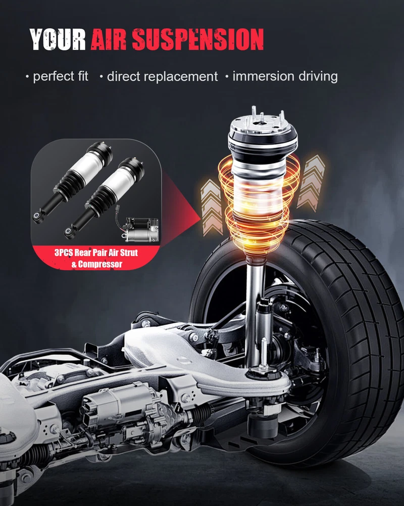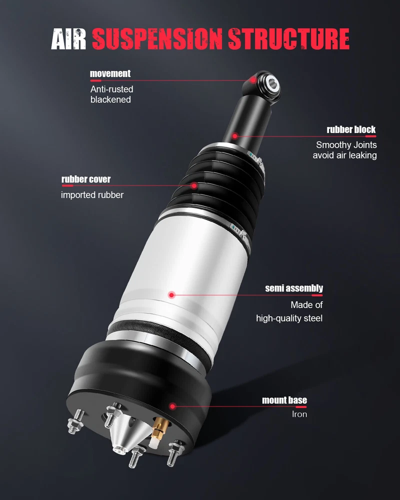 Notes: Please double confirm the compatibility as well as the OEM number before purchasing. Instruction is not included. Professional installation is recommended. *OEM Part Number: Rear Air Suspension Strut: C2C31014,C2C39765,C2C41343 Air Suspension Compressor Pump:C2C2450,C2C22825,C2C27702,C2C27702E *Item Specifications: Key Words: 3PCS Rear Air Suspension Shock Strut & Air Suspension Compressor Pump For Jaguar XJ-Series XJ8 XJR 2004-2010 Super V8 2005-2009 Vanden Plas 2004-2009 Package Includes: 2PCS Rear Left & Right Air Suspension Strut & 1PC Air Suspension Compressor Pump 3* Rear Air Suspension Shock & Compressor For Jaguar Super V8 /Vanden Plas Base Notes : Please double confirm the compatibility as well as the OEM number before purchasing. Instruction is not included. Professional installation is recommended. *OEM Part Number: Rear Air Suspension Strut: C2C31014,C2C39765,C2C41343 Air Suspension Compressor Pump: C2C2450,C2C22825,C2C27702,C2C27702E *Item Specifications: Key Words: 3 PCS Rear Air Suspension Shock Strut & Air Suspension Compressor Pump For Jaguar XJ-Series XJ8 XJR 2004-2010 Super V8 2005-2009 Vanden Plas 2004-2009 Package Includes: 2 PCS R ear Left & Right Air Suspension Strut & 1PC Air Suspension Compressor Pump *Compatibility Chart: 1, You can distinguish specific model of an automobile by VIN(Vehicle Identification Number). 2, VIN(Vehicle Identification Number) consists of total 17 English letters and arabic digits. 3, VIN does not include the letters I (i), O (o), and Q (q) (to avoid confusion with numerals 1 and 0). Jaguar Super V8 Base Sedan 4-Door 4.2L 2005-2009 Super V8 Portfolio Sedan 4-Door 4.2L 2006 Vanden Plas Base Sedan 4-Door 4.2L 2004-2009 XJ Base Sedan 4-Door 5.0L 2010 XJ L Sedan 4-Door 5.0L 2010 XJ L Supercharged Sedan 4-Door 5.0L 2010 XJ L Supersport Sedan 4-Door 5.0L 2010 XJ Supercharged Sedan 4-Door 5.0L 2010 XJ Supersport Sedan 4-Door 5.0L 2010 XJ8 Base Sedan 4-Door 4.2L 2004-2009 XJ8 L Sedan 4-Door 4.2L 2005-2009 XJR Base Sedan 4-Door 4.2L 2004-2009 * Generation & Evolution: Jaguar XJ Series XJ6 Series 1 (1968-1973) XJ6 Series 2 (1973-1979) XJ6 Series 3 (1979-1992) XJ40 (1986-1994) X300 (1994-1997) X308 (1997-2003) X350 (2003-2007) Super V8 Long-Wheelbase/Daimler Super Eight Vanden Plas XJ8-XJ Executive XJR-Sport Oriented X358 (2007-2009) Face-Lifted Version From X350 XJ8-XJ Executive XJR-Sport Oriented X351 (2009-present) *Platform Drive Layout : Front Engine-Rear Wheel Drive Layout *Installation Guideline: Tighten all nuts and bolts to manufacturer's specifications during the installation process. Do not remove the air fitting from the air strut. Doing so may cause damage and/or void warranty. Remove the white shipping pin from the new air fitting and insert the air line until fully seated. 1.Installation is in reverse order of air strut removal. Reusing factory hardware where applicable. * Frequently Asked Questions : How to prevent the damage of air springs/How to extend the service life of air springs/struts etc.? An air strut with separable air springs If your vehicle offers a separable air suspension (Audi Allroad A6 C5, Mercedes-Benz W164, BMW X5, etc.), you should regularly (about once a week) lift the car to the maximum position, and remove dirt with a high-pressure cleaner (keep the cleaner at a distance to the air spring about 30 cm/12 inches, otherwise water pressure can damage the air spring). The highest position may vary depending on your model and regulation options. Therefore, please test this by trying the different modes available to you (Sport, comfort, dynamic, off-road) and choose the one that sets your vehicle to the highest position. The dirt will most likely be found under the fold of the pneumatic chambers. If you find a frozen layer of bitumen on the piston guide (the part of a strut on which the air spring is installed), it is recommended to clean it as well. Whenever possible, avoid riding on fresh asphalt, as fresh bitumen mixed with sand immediately results in a build-up of abrasives on the piston and in turn contributes to accelerated wear and tear of the air spring. A complete air suspension shock Many cars such as Mercedes W220 or W211 are set up with a complete air strut - shock absorber and air spring visually form a complete spare part. In many cases, you can easily recognize these by the metal cups with which the air spring is tightly mounted. To best avoid any damage, we highly recommend to regularly check the condition of the dust protection seals of the air strut. What is the difference between an air spring and an air strut? The air spring is a part of the air strut. Some vehicles (e.g. Mercedes ML) allow you to change the air spring separately. At our online shop you have the opportunity to buy either the whole air strut or only the air spring. For some type of vehicles it is not possible to change the air spring separately. In this case the whole air strut should be replaced. Which side of my car is the Right and Left? The right and left sides of an automobile are determined as if sitting in the car facing forward. Thus, the left side is on the left when sitting in the car facing forward, and the right side is on the right. For American cars, the driver’s side is on the left, and the passenger sits to the right of the driver. For cars in Japan, Britain, Ireland, the Bahamas and some other former British colonies -- where they drive on the left side of the road -- the passenger sits on the left side, and the driver (along with all the driving controls) is on the right. Item Specifics Placement on Vehicle Left Right Rear Type Air Suspension Strut Fitment Type Direct Replacement Package Box Single Weight(LB) 42.108 Minimum Operating Pressure (psi) 90 Drive Layout Front Engine RWD & 4WD Platform X350 X358 Material Iron Aluminium Alloy Rubber Included Hardware None Custom Bundle Yes Quantity 3PCS Manufacturer Warranty 1 Year OE Spec or Performance/Custom OE Spec Adjustable Yes Features Sealed Superseded P