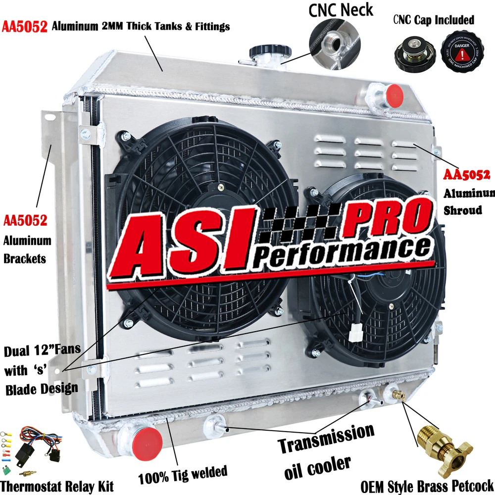 DELIVERY PAYMENT RETURNS WARRANTY FEEDBACK Store Home Car&Truck Radiator Oil Tank/Can Arms/Carrier Motorcycle Radiator Intercooler&Kit Exhaust Head Pipe Radiator Intercooler Hose Pipe Cooling Thermo Fans&relay Radiator Cap&Filler Neck&Plug Other Products DESCRIPTION Package Include: 1 x 3-Row AA5052 Aluminum Radiator 1 x CNC Machined Radiator Cap 1 x AA5052 Aluminum Shroud 2 x 12" Fans (Includes mounting kits) 1 x Thermostat Relay Kit Radiator Size: Condition : New Row: 3 Rows Core Material: Full Aluminum Core Size: 17 1/2'' x 26 1/4'' Overall Size: 23 1/2" x 29" Inlet Hose Connection: 1 1/2'' Passenger Side Outlet Hose Connection: 1 3/4'' Driver Side Trans mission Oil Cooler: Φ38*305*M10*1.0(T) Transmission: Automatic and Manua l Petcock Drain: OEM Style Brass Petcock Drain Radiator Cap: CNC M achined F iller N eck and C ap High Performance Racing Spec. Vehicle Fitment: For Dodge For 1969-1974 Dodge Coronet For 1970-1974 Dodge Charger For 1970-1974 Dodge Challenger Engine 1: 5.2L 5.6L 5.9L 6.3L 6.6L 7.0L 7.2L V8 For Plymouth For 1968-1973 Plymouth Satellite For 1970-1973 Plymouth Barracuda For 1970 Plymouth Belvedere Engine 2: 3.7L l6, 4.5L 5.2L 5.6L 6.3L 6.6L 7.0L 7.2L V8 AA5052 Aluminum Shroud and Fans: The New Design fan and the AA5052 fan shroud effectively drive the heat over and out the engine compartment rather than thrusting it into the front of the engine. The fan shroud basically houses the fan blades securing it in place and keeping it from damaging the other engine components that may disturb the smooth and even operation of the engine. With excellent operating temperature management, allowable levels of engine temperature are stabilized. Investing in proper maintenance though will considerably benefit the ride and driving quality in maintaining the ideal working conditions of the engine. 1. Shuttered design AA5052 fan shroud to guaranteed airflow passes high efficiently.Make your engine bay perfect! 2. S blade fans, Push or Pull Type design,lightweight Plastic Durable Material. 3. Additional with thermostat,professional matching advice, conside r for every detail and needed 12 ’’ Fan Specification: Maximum Fan CFM: 1730 cfm Fan Diameter: 12.050" Thickness: 2.500" Number of Blades: 10 S-Type blades Blade Material: Plastic Amp Draw: 12.70 amps Thermostat Kit: Universal fit for any automotive vehicle and electric fan. Activates by grounding electric fans at preset temperature. 180'F turn-on temperature, 165'F turn-off temperature. RED + connect directly to battery. WHITE wire to ignition switch power source. BLACK goes to thermos switch. BLUE wire goes to the Fans. Description: Our Radiator is made of AA5052 aircraft aluminum. Its different from other sellers T-3303 Series. In fact, AA5052 series Aluminum is much better than T-3303 series. More than 90% of aftermarket manufacturers use the T-3303 series Aluminum, because it is cheaper and easier to get the material. However, T-3303 aluminum has many disadvantages, such as poor polishing effect, softness, easiness to scratch and corrode, poor heat dissipation effect. If the T-3303 aluminum radiator is operated in high pressure and high temperature for a long time, the leaking problem would occur very soon. AA5052 Aluminum is an Al-Mg alloy with good corrosion resistance, excellent reliability and cold workability and strength. The main alloying element of T-5052 is magnesium, which has good forming and processing properties. It is widely used in the manufacture of aircraft fuel tanks, oil pipes, and sheet metal parts of transportation vehicles and ships, hardware products, and electrical-appliance casings. This AA5052 Aluminum Radiator is designed to provide maximum cooling efficiency to prevent premature engine failure. Its light-weight, and high-heat transferring aluminum features a tube and fin design that, dramatically increases surface area that enables the heat to dissipate more efficiently. This AA5052 Aluminum Radiator is at least 30%-45% more efficient than stock ones. Most importantly, it has a much higher capacity for coolant than stock ones, which means that your cooling system will be more efficient and will be more resistant to temperature surges in racing applications. 1. Made from Aircraft AA5052 grade aluminum for prolonged lifespanand with raw aluminum finish 2. Brazed core technology to guarantee optimum performance and dependability 3. All AA5052 Aluminum 2mm thick tanks and fittings,Ensure it's hard and durable 4. Billet Aluminum CNC machined fill neck rugged and durable 5. CNC machined cap with Engraved craftsmanship, anodized treatment. 6. OEM style brass petcock drain much better than other plastic one on eBay 7. Carefully crafted to exceptional OE standards for precise fit. RETURN & EXCHANGE DELIVERY PAYMENT RETURNS WARRANTY FEEDBACK DELIVERY Paypal ONLY --the easiest and most secure way to pay on line PAYMENT All orders will be sent within one business day after payment received. Note: Please contact for quote if international postage NOT display. (shipping and handling charge is only for the lower 48 states in USA, other states'[Alaska, Hawaii, and Puerto Rico etc.]shipping cost , please contact us for quote.) RETURNS A new return is considered a brand new item that you ended up not needing or perhaps you purchased incorrectly for your specific vehicle. Please keep in mind that spending time before purchasing the part to confirm it is indeed exactly what you need can help prevent you from ordering the wrong part. Please remember to email us which warehouse to send the item back before return. And all returns must be shipped back in their original factory packaging. Shipping Damage Shipping damage is any item/package suspected of being broken or damaged in anyway during the shipping process. We purchase full insurance for this, however the damage must be reported to us within 3 days of receiving the package. WARRANTY 1 Year warranty against manufacture defect. Replace/return are available if buyer