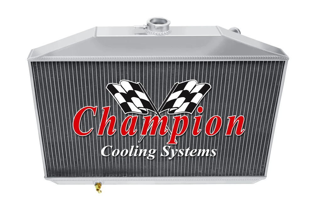 Champion Cooling radiators are tig welded with aircraft grade aluminum. Every radiator comes with a limited lifetime warranty so you can buy with confidence! Product Specifications: Core (H x W): 15" x 24.75" - Overall (H x W): 19.875" x 26.75" - Hose Locations (In x Out): Driver x Pass - Hose Fittings (In x Out): 1.25" x 1.5"Please click on the "Read more" link below to view a complete item description with product videos and additional items to upgrade your cooling system. Champion Racing Radiators PART INFORMATION Shipping Payment Policies Contact Us Part Information Related Items Need A Different Set Up? (Click A Photo Below) 3 Row Racing Champion Radiator for 1955 Studebaker President V8 Engine #CC5355 Genuine Champion Cooling Systems Part #CC5355 This radiator is designed for a 4.2L(259ci) V8 engine. (Please Verify Your Radiator Core size Before You Buy) Features Higher density core: cooling rows are spaced 3/8" apart: giving you 25% more rows within the core than other aluminum radiators sold on eBay and 35% more rows than OEM copper. Aluminum dissipates heat more efficiently than copper or brass. 14-16 cooling fins per inch (42 per square inch) giving you approximately 1500 more cooling fins than other aluminum radiators and approximately 3000 more than OEM copper radiators. Lighter weight. Outperforms other 2, 3 and 4 row copper radiators. High performance appearance. You get "BIG BLOCK COOLING" and "PEACE OF MIND" when you drive your car with a Champion Cooling Systems radiator. You could easily spend $400 - $1,000 more for a radiator of similar quality. Specifications Down Flow Or Cross Flow Type: Down Flow Mounting Type: Bracket Tank Material: Aluminum Core Material: Aluminum Overall Height: 19 7/8 Overall Width: 26 3/4 Core Height: 15 Core Width: 24 3/4 Inlet Location: Driver Inlet Diameter: 1 1/4 Outlet Location: Passenger Outlet Diameter: 1 1/2 Core Row Quantity: 3 Internal Transmission Oil Cooler: No This package includes a 3 Row all aluminum radiator. Champion Cooling Systems radiators are manufactured at their ISO certified facility. They are made to high standards of quality and workmanship using the Highest Grades of aluminum available and are constructed with 100% welded seams, brazed core technology and no epoxy. They come with a Lifetime Limited Warranty and are made to install with little or no modifications using your Original Mounts giving you the confidence you desire. Shipping Shipping FedEx Ground Service to the Lower (48) States: FREE SHIPPING. (Hawaii and Alaska $65.00 Additional Shipping Charge). International Shipments are via FedEx International (See Shipping Drop Box For Prices). Payment Guarantee Policies Contact Us We offer a full line of Champion Cooling Systems Performance Products. Thank You! © copyright 2009