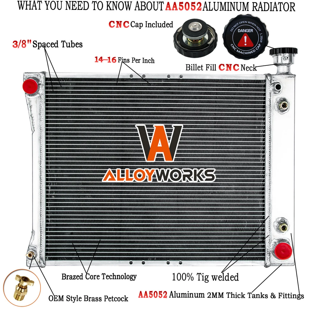 STORE HOME ALL ITEMS HOT ITEMS ADD TO FAVS CONTACT US ABOUT US FEEDBACK Store categories All Car & Truck Radiators Motorcycle Radiator Business-Industrial Radiators Motorcycle Exhaust Systems Intercooler Parts Oil Cooler Radiator Hose ATV UTV A-arms Store Newsletter Add my Store to your Favorites and receive my email newsletters about new items and special promotions! DESCRIPTION Package Include: 1 X 3-Row AA5052 Aluminum Radiator 1 X CNC Machined Radiator Cap Fit for: 1988 - 1993 Chevy C1500 / C2500 / C3500 / K1500 / K2500 / K3500 4.3L / 5.0L / 5.7L Non Turbo 1988 - 1993 GMC C1500 / C2500 / C3500 / K1500 / K2500 / K3500 4.3L / 5.0L / 5.7L Non Turbo 1992 - 1995 Chevy C1500 Suburban / C2500 Suburban / K1500 Suburban / K2500 Suburban 5.7L Non Turbo 1992 - 1995 GMC C1500 Suburban / C2500 Suburban / K1500 Suburban / K2500 Suburban 5.7L Non Turbo Please Notice Fit 4.3L / 5.0L / 5.7L Non Turbo Motors Only Fits Models with 20-3/4" Core; W/ Transmission Oil Cooler; W/O Engine Oil Cooler. NOT fit 6.2L, 6.5L or 6.7L Models NOT fit with 28" or 34" Wide Core Radiator Models Radiator Configuration: High Performance Racing Spec. 3-Row of tubes Core Racing Design Material: High Quality AA5052 Aluminum Material: AA5052 Aluminum Core Dimension: 20-3/4 Inch x 17-1/4 Inch Engine Oil Cooler: NO Transmission Oil Cooler: Yes Radiator Cap:CNC Precision Machined Radiator Cap Crafts:100% Tig Welded,No Epoxy Radiator Drain Plug:OEM Style Brass Petcock Drain. Please Check the Size Before You Buy! Description: This AA5052 Aluminum Radiator is designed to provide maximum cooling efficiency to prevent premature engine failure. Its light-weight, and high-heat transferring aluminum features a tube and fin design that, dramatically increases surface area that enables the heat to dissipate more efficiently. This AA5052 Aluminum Radiator is at least 30%-45% more efficient than stock ones. Most importantly, it has a much higher capacity for coolant than stock ones, which means that your cooling system will be more efficient and will be more resistant to temperature surges in racing applications. 1.made of AA5052 aircraft aluminum,stronger than other popular alloys and has increased corrosion resistance. 2.Brazed core technology to guarantee optimum performance and dependability. 3.AA5052 Aluminum 2mm thick tanks and fittings,Ensure it's hard and durable. 4.Higher density core: cooling rows are spaced 3/8" apart.giving you 25% more rows within the core than other aluminum radiators. 5.14-16 cooling fins per inch,giving you approximately 1500 more cooling fins than other aluminum radiators,throws off much more heat. ABOUT US PAYMENT SHIPPING FEEDBACK CONTACT US ABOUT US ALLOYWORKS radiator is a performance aftermarket car parts company providing a variety of aluminum radiator for all sorts of makes and models. Shop with us with confidence you would be receiving the best quality products for the value. No matter if it's for a car or truck we have exactly what you're looking for! Browse through our eBay store if you wish to find out more of what we have to offer. thanks PAYMENT Paypal ONLY --the easiest and most secure way to pay on line SHIPPING Items will be shipped 24 hours of payment verification. We do not offer local pick ups for any orders made through eBay. We use United States Postal Service (USPS), United Parcel Service (UPS) or Federal Express (FedEx) to ship our packages. Ground Carriers do not deliver to PO BOX or areas : Hawaii (HI) , Alaska (AK) , Puerto Rico (PR) , Army Post Office (APO) , Fleet Post Office (FPO), PR , HI , AK , APO , FPO ,Canada and International Countries. RETURNS We accept return in 30 days and appreciate communication in advance! All return items MUST be in brand new condition which means the item is never installed and kept in the original packaging. You must contact us to request a Return Authorization Number (RA#) before you send anything back. With RA#, we may address return issues with high efficiency. Without RA#, we may fail to find your transaction. Appreciate your understanding! Shipping Damage Shipping damage is any item/package suspected of being broken or damaged in anyway during the shipping process. We purchase full insurance for this, however the damage must be reported to us within 3 days of receiving the package. FEEDBACK CONTACT US STORE HOME HOT ITEMS ADD TO FAVS CONTACT US ABOUT US FEEDBACK Copyright © Alloyworks_performance_radiator. All rights reserved Package Include: 1 X 3-Row AA5052 Aluminum Radiator 1 X CNC Machined Radiator Cap Fit for: 1988 - 1993 Chevy C1500 / C2500 / C3500 / K1500 / K2500 / K3500 4.3L / 5.0L / 5.7L Non Turbo 1988 - 1993 GMC C1500 / C2500 / C3500 / K1500 / K2500 / K3500 4.3L / 5.0L / 5.7L Non Turbo 1992 - 1995 Chevy C1500 Suburban / C2500 Suburban / K1500 Suburban / K2500 Suburban 5.7L Non Turbo 1992 - 1995 GMC C1500 Suburban / C2500 Suburban / K1500 Suburban / K2500 Suburban 5.7L Non Turbo Please Notice Fit 4.3L / 5.0L / 5.7L Non Turbo Motors Only Fits Models with 20-3/4" Core; W/ Transmission Oil Cooler; W/O Engine Oil Cooler. NOT fit 6.2L, 6.5L or 6.7L Models NOT fit with 28" or 34" Wide Core Radiator Models Radiator Configuration: High Performance Racing Spec. 3-Row of tubes Core Racing Design Material: High Quality AA5052 Aluminum Material: AA5052 Aluminum Core Dimension: 20-3/4 Inch x 17-1/4 Inch Engine Oil Cooler: NO Transmission Oil Cooler: Yes Radiator Cap:CNC Precision Machined Radiator Cap Crafts:100% Tig Welded,No Epoxy Radiator Drain Plug:OEM Style Brass Petcock Drain. Please Check the Size Before You Buy! Description: This AA5052 Aluminum Radiator is designed to provide maximum cooling efficiency to prevent premature engine failure. Its light-weight, and high-heat transferring aluminum features a tube and fin design that, dramatically increases surface area that enables the heat to dissipate more efficiently. This AA5052 Aluminum Radiator is at least 30%-45% more efficient than stock ones. Most importantly, it has a much higher ca
