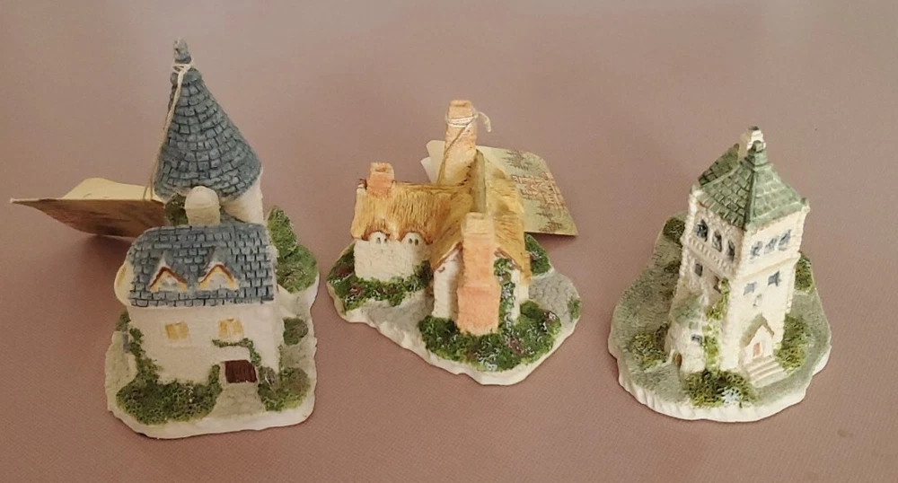 3 Russ Berrie & Co Collectible Miniature Cottages Neiman Marcus Peter James Tags