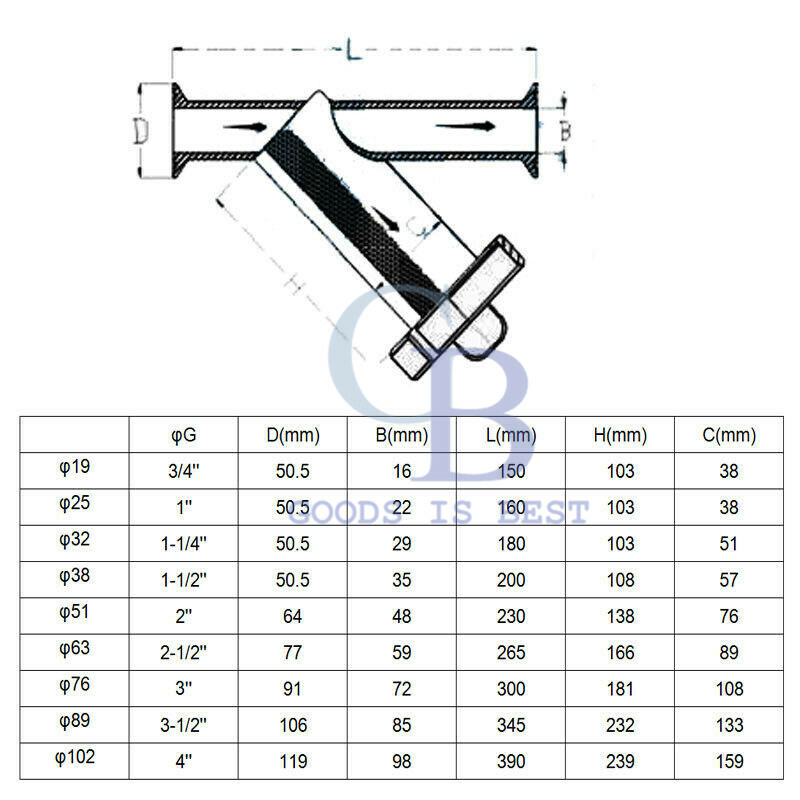 Description Material : 316 Stainless Steel Size : 3" Sealing material: Silicone ( if you need viton seal,please contact us) Mesh: 100 ( if you need other mesh, please contact us ) Connection: Clamp OD 91MM Work Pressure: 0 - 1.6MPa / 232psi Applicable Temperture: -10℃ ~ +120 ℃ Applicable Medium: Water, Oil Operation: Manual Product certification: ISO
