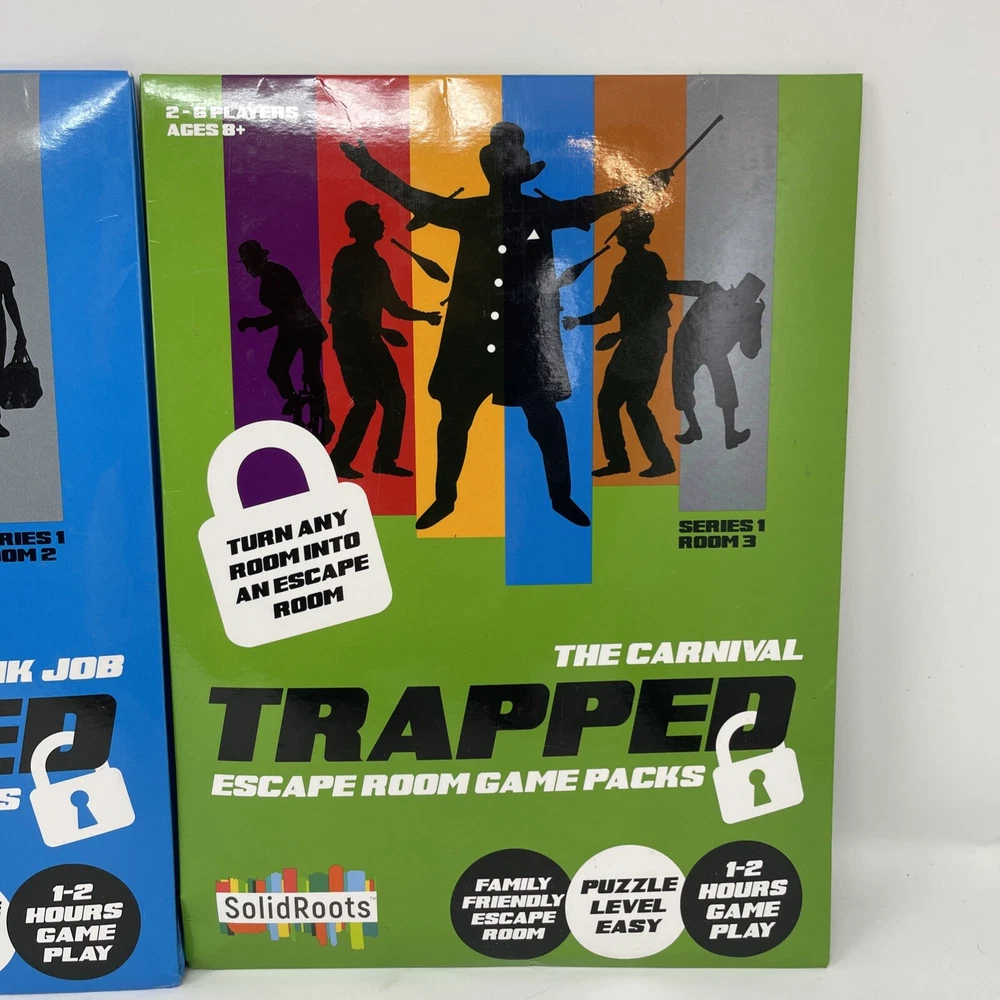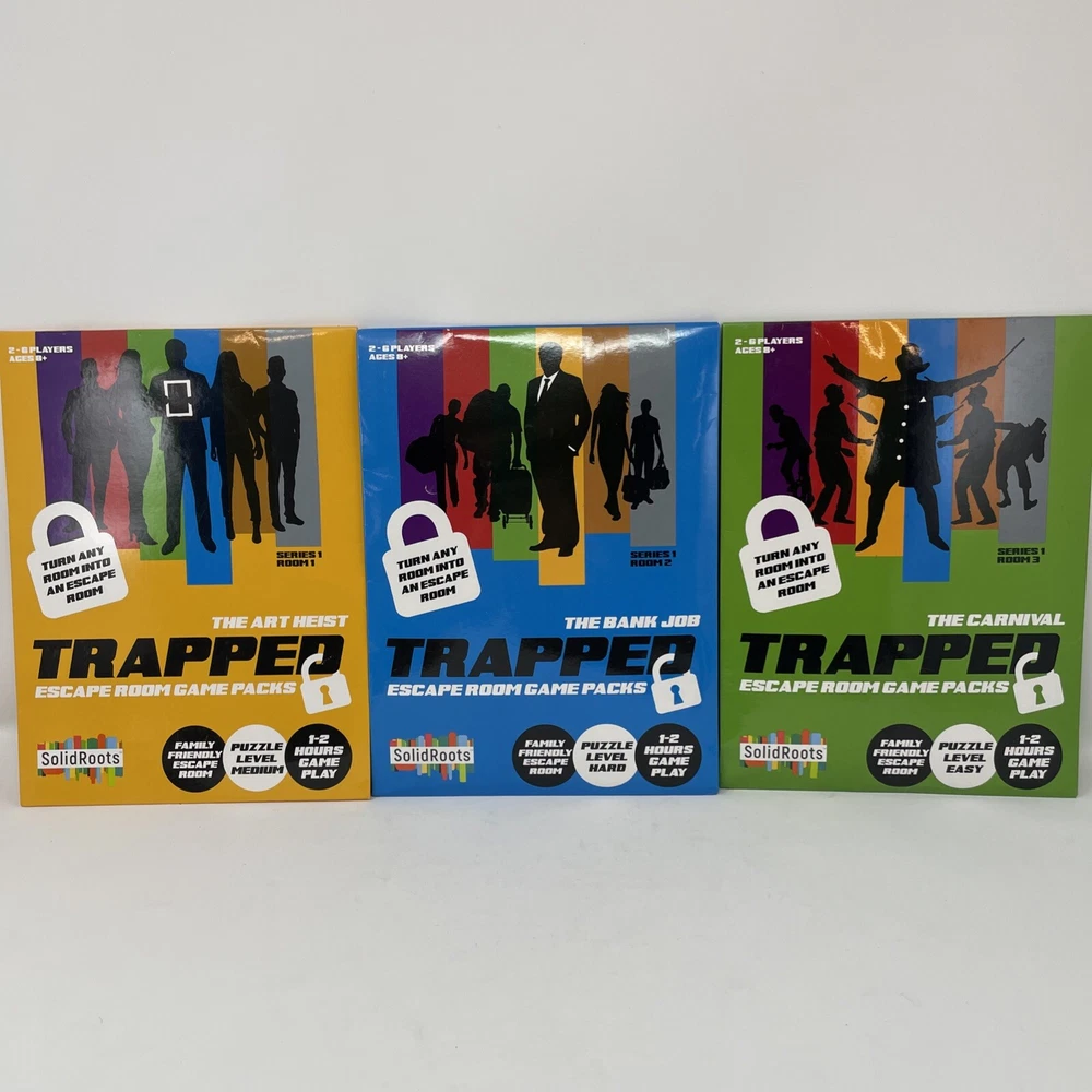 3 Solid Roots Trapped Escape Room Game Packs Bank Job, Art Heist, & The Carnival Brand new, ships same or next day. Please reach out with any questions!