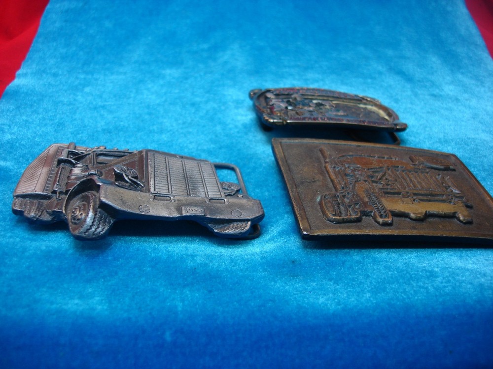 3 TRUCKING RELATED WESTERN STYLE BUCKLES 3 TRUCKING RELATED WESTERN STYLE BUCKLES Description ********* ALL THREE OF THESE BUCKLES HAVE SEEN USE BUT ARE STILL IN GOOD USABLE CONDITION. ALL THREE HAS 1 3/4" OPENINGS FOR YOUR BELT. BEING SOLD AS IS, NO RETURNS OR REFUNDS. BE SURE TO TAKE A LOOK AT THE PHOTOS. PLEASE NOTE : OUR PRICES ARE FIRM. THEY ARE THE LOWEST WE CAN SELL IT FOR. WE DO NOT ACCEPT OFFERS. IF YOU OFFER..YOU WILL BE BLOCKED Terms, Payment and Shipping Information We currently only ship to the United States and through eBay's Global Shipping Program. We will help with shipping and handling charges on multi-auction wins. Shipping is usually $1.00 per auction after the first, unless there are weight or size issues. You must ask for a combined invoice when you are done buying or bidding. Most folks figure the S/H charges into their total price. A careful eBayer who takes the time to study the photos, reads the entire description, and asks pertinent questions is our best customer. The digital images we display have the most accurate color possible. However, due to differences in electronic displays, we cannot be responsible for variations in color between the actual product and your display. We reserve the right to cancel any bid. Be sure to check out our other items: Listing and template services provided by inkFrog