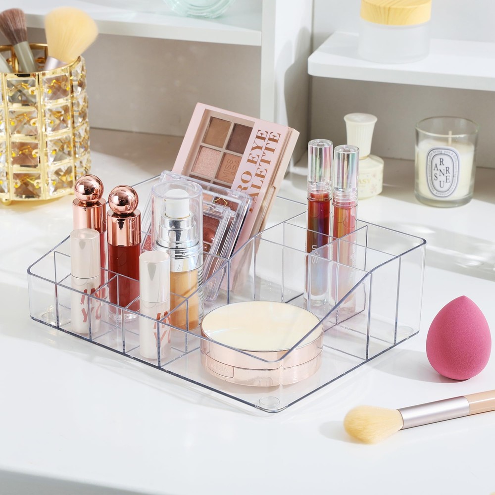 Spacious Compartments: The makeup organizer has two large drawer and one bin with multiple compartments of varying sizes, designed to hold a wide range of beauty products such as lipsticks, brushes, eyeshadows, foundation, nail polish, eyeshadow palettes, skincare, and more. Clear and Accessible: With a transparent design, you can quickly find what you need without rummaging through drawers, saving time during your daily beauty routine. Better Use Experience: Our makeup organizer features slide rails and stoppers to ensure drawers won't be completely pulled out, preventing items from spilling everywhere. Additionally, the bottom of the organizer is equipped with anti-slip silicone pads, providing smooth and stable operation during use, thus enhancing your overall experience. Stylish and Durable: Crafted from premium materials, our makeup organizer combines durability with a sleek, modern look that complements any décor, whether modern minimalist, Nordic, or vintage. This organizer is also a must-have for beauty bloggers, makeup artists, and college students.