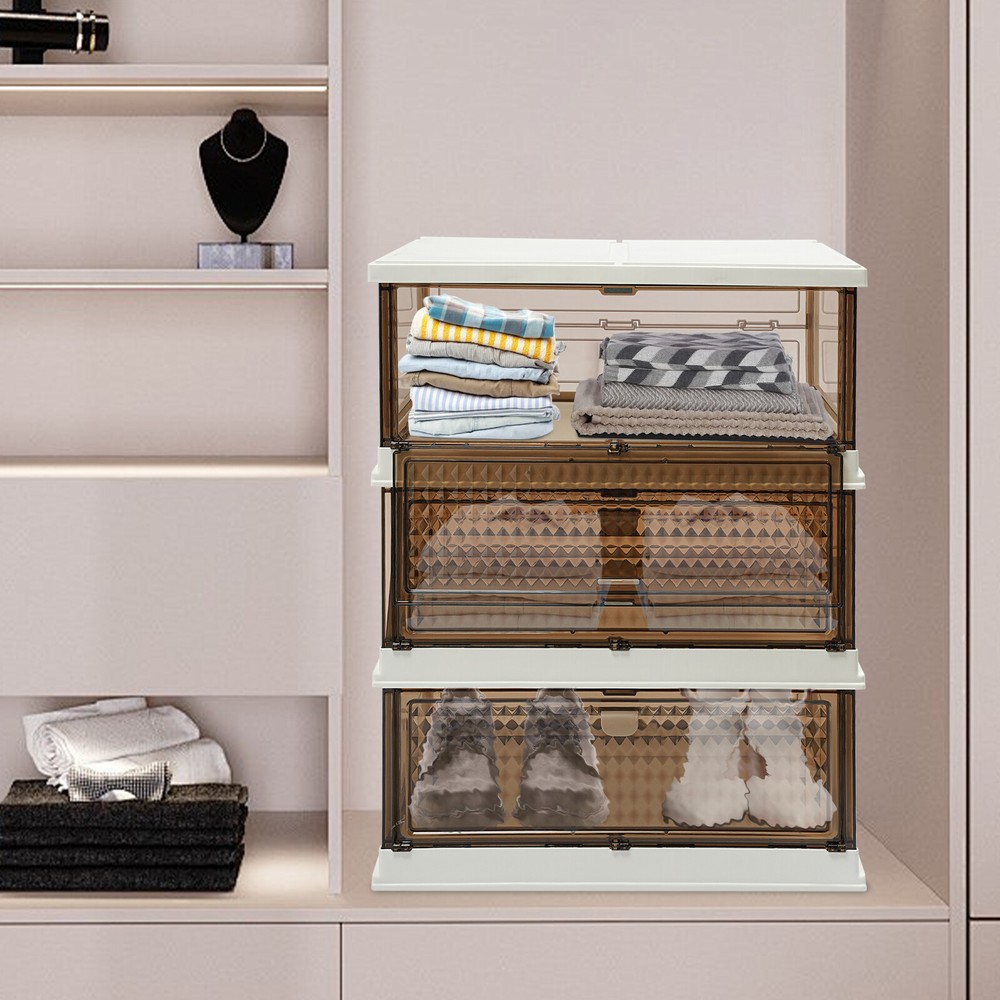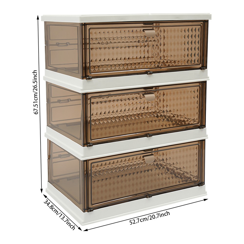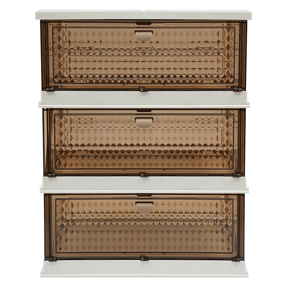 Details Practical Handles: The handles on each door make it easy to open and close the doors. Smooth Edges: They not only enhance the aesthetics of the product but also improve safety during cleaning and use. Specification Color: White Coffee Style: Modern Shape: Rectangle Material: PP, PS Process: Injection Molding Mount Type: Floor Standing Each Tier Load-bearing Capacity: 6.5kg/14.33 lbs Number of Tiers: 3 Product Size(Unfolded): 52.7*34.8*67.51cm/20.7*13.7*26.5in Package Size: 59*41.5*15.5cm/23.23*16.34*6.1in Gross Weight: 5.23kg/11.53lbs Net Weight: 4.43kg/9.77lbs Package Included 1* Storage Cabinet 3 Tier - Collapsible Storage Cabinet - Foldable Storage Bins with Doors Description Do you still struggle with clutter and lack of storage space in your home? This storage cabinet will keep your room organized with its small footprint and large storage space. The strong weight-bearing capacity allows you to use it with confidence, and the foldable design makes it easy to carry and store . If you want to have a neat space, this product is an indispensable helper for you. Key Features Solid and Durable : This product is made of high-class PP and PS , which is anti-corrosion , anti-rust , environmentally friendly, strong, and durable, ensuring you can use it for a long time. Spacious Storage Space : The 3-tier structure provides you with the convenience of storing different categories of items in separate sections, including shoes, snacks, pet supplies, and toys. In addition, the large top platform is convenient for placing your flower pots, bags, keys, umbrellas, and more. Thoughtful Design: The visual design allows you to see items inside at a glance, making it easier to select, access, and place items. The magnetic cabinet door will not open automatically when moving or stationary and is effective in preventing dust and insects in daily use. The diamond panel allows you to see what is inside in a way that doesn't look messy. Strong Bearing Capacity : High-class material, one-piece frame, and rectangular structure make this product withstand 14.33 lbs in each tier, so you can use it with confidence without worrying about collapsing. Foldable and Portable: You can fold this product into a smaller size for convenient storage when not in use, which will not take up much space. Simple to Use : This product adopts an integrated foldable design with a simple structure without additional assembly. You simply unfold it to start using it, thus saving time and effort. Effortless Clean : The smooth surface and simple structure make the cabinet easy to clean with water and a damp cloth (not included). Ideal Gift : Beautiful appearance and practical function make it an ideal housewarming gift for family and friends so that they can enjoy a more exquisite life. Stylish Appearance : The pleasing white and coffee color, diamond patterns on the doors, and smooth lines make the whole product lovely and modern. Wherever it is placed, it will be beautiful scenery. Application It is suitable for storing shoes, cosmetics, books, towels, snacks, sundries, and more in entrances, kitchens, closets, study rooms, living rooms, cloakrooms, or bedrooms. Details Practical Handles : The handles on each door make it easy to open and close the doors. Smooth Edges : They not only enhance the aesthetics of the product but also improve safety during cleaning and use. Specification Color: White Coffee Style: Modern Shape: Rectangle Material: PP, PS Process: Injection Molding Mount Type: Floor Standing Each Tier Load-bearing Capacity: 6.5kg/14.33 lbs Number of Tiers: 3 Product Size(Unfolded): 52.7*34.8*67.51cm/20.7*13.7*26.5in Package Size: 59*41.5*15.5cm/23.23*16.34*6.1in Gross Weight: 5.23kg/11.53lbs Net Weight: 4.43kg/9.77lbs Package Included 1* Storage Cabinet Notes Please confirm the product dimensions before purchasing. Please avoid heavy impact, sharp objects, or direct high-temperature exposure during use to avoid product damage or aging. Please note that this product does not include other items shown in the picture. Please allow the slight color difference caused by the shooting light and 1-3cm error due to manual measurement and make sure you do not mind before ordering. Payment Delivery details Terms of sales About us Contact us Payment We accept ebay payment 。 Fees such as import duties, taxes are not included in the item price or shipping costs. These charges are the buyer's responsibility. Delivery details Shipping: 2-9 working days to: USA Terms of sales We maintain high standards of excellence and strive for hundred percent customer satisfaction. Feedback is very important to us. We hope that you contact us immediately before you give neutral or negative feedback, so that we can address your concerns. It is impossible to address issues if we do not know about them! About us Your satis faction is our ultimate goal. We work hard to earn your trust and future business. Our certified technicians have tested each item before shipping. The unit comes with 1 year limited warranty on all manufacturing defects. a) If you receive a defective item, you may return it or ask for a discount. Please contact us within 14 days after you receive the package. b) What you returned must be intact and in its original packaging as re? u. Customer is responsible for shipping costs of the returned item. c) We will cover the cost of shipping back t with the shipping rate indicated in the registration page. We will send you a new unit or refund the full payment you paid. Thank you. Contact us Business Hour Business Hour: Monday To Friday: 8:30 AM to 5:00 PM (Beijing China time) Due to time zones, our reply to your questions may not be immediately. But within above working time, we will reply your email within 24 hours. If it's non-workdays, please kindly be patient and wait till Monday. Please contact us with ebay message. Please feel free to contact us if you have any questions. Monday To Friday: 8:30 AM to 5:00 PM (Beijing China ti