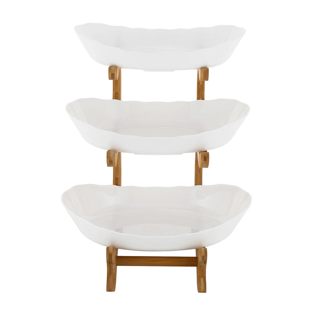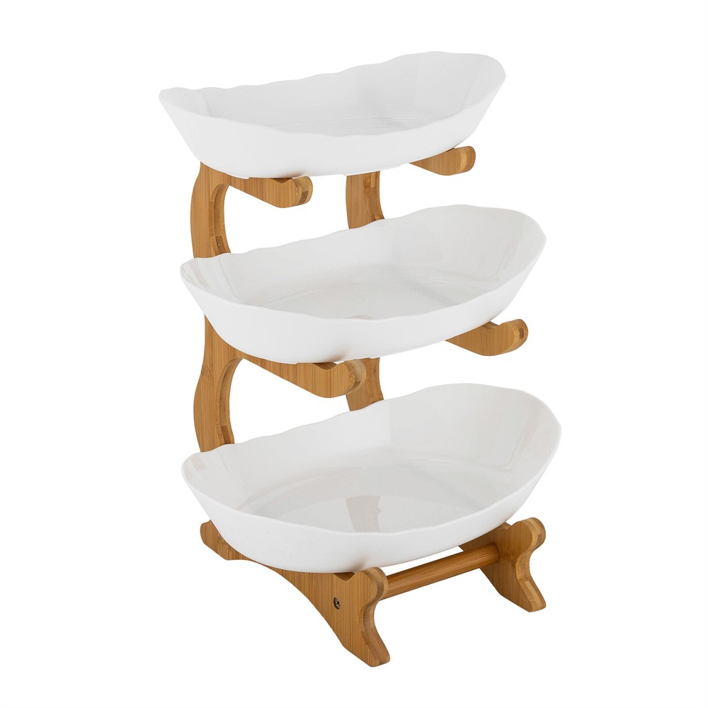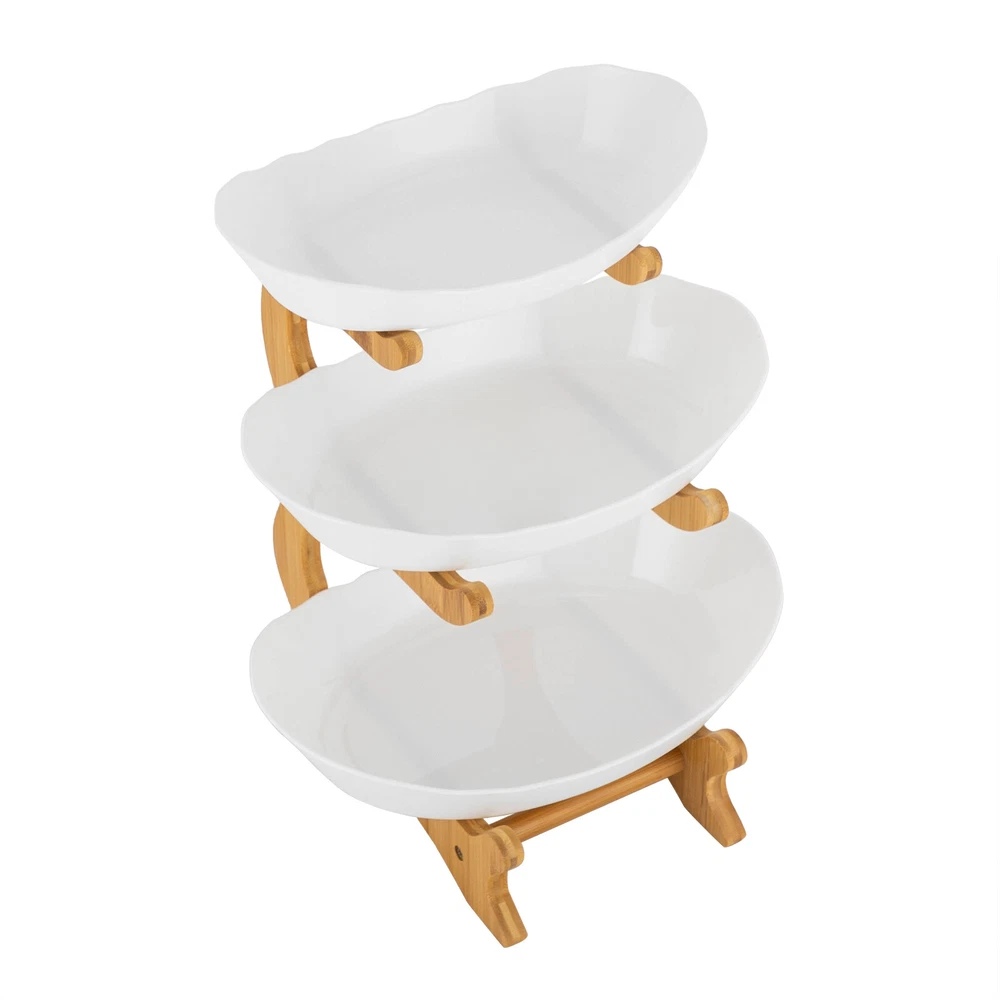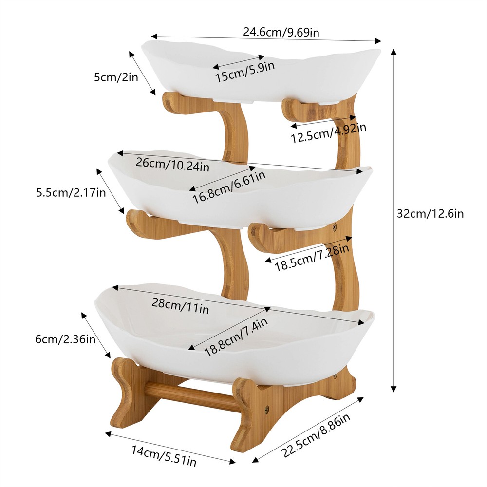 3 Tier Serving Bowls with Tray Snack Dessert Cake Stand Fruit Bowl for Party Specification Material: Bamboo Wood, Food-grade PP Color: Wood, White Shape: Yuanbao Process: Polished, One-piece Molding Mount Type: Countertop, Tabletop Assembly Required: Yes Is Dishwasher Safe: No Number of Bowls:3 Number of Tiers: 3 Board Thickness: 12mm/0.47in Small Bowl Size: 24.6*15*5cm/9.69*5.9*2in Medium Bowl Size: 26*16.8*5.5cm/10.24*6.6*2.17in Large Bowl Size: 28*18.8*6cm/11*7.4*2.36in Overall Size: 22.5*14*32cm/8.86*5.51*12.6in Package Size: 25*16*34cm/9.84*6.3*13.38 Gross Weight: 2.5kg/5.51 lbs Package Included 1* Three-tier Fruit Bowl with Bamboo Wood Stand 1* English Installation Diagram All Accessories for Use Description In the pursuit of a natural and healthy modern life, we have carefully designed a three-tier food-grade PP fruit bowls with bamboo wood stand that blend traditional aesthetics with modern materials. It is not only a practical home accessory, but also a work of art on the dining table, adding a touch of freshness and peace of mind to your family gatherings or daily leisure time. Key Features Creative Yuanbao Shape: Yuanbao-shaped fruit plate with bamboo and wood shelves, is not only beautiful and unique but also sends good wishes for family prosperity, wealth, and prosperity, for family gatherings or holiday celebrations to add a festive atmosphere. Durable and Sturdy: The 12mm thickened bamboo wood rack is polished, so it is not easy to corrode and rust, while the fruit plate is molded from high-quality food-grade PP in one piece, which also ensures that it is not easy to deform in long-term use. Space Optimization: Compact stand size (8.86*5.51*12.6in) can reasonably utilize the space, while the fruit tray that can be separated and stackable for use is also convenient for you to store and achieve space optimization. Eco-friendly and Hygienic: Food grade PP material and eco-friendly bamboo wood frame are non-toxic and odorless , ensuring the safety and hygiene of the food placed. In addition, the open structure design is conducive to air circulation, reducing moisture accumulation and extending the freshness period of food. Scientific Tiering: Three different sizes of fruit plate layered design is convenient for different fruits or snacks classification, both beautiful and hygienic, avoiding the food between each other string flavor. Easy to Assemble: The simple structure and included clear assembly diagram allow you to complete the installation quickly. Worry-free Cleaning: The smooth surface and detachable design make daily cleaning simple and fast. You just need to gently wipe with a damp cloth. Customer Service: We aim to provide quality products and services. If you have any problems, please feel free to contact us. We will reply and solve the problem for you as soon as possible. Details Non-slip Base: It ensures that the fruit tray and stand are placed securely. Fine Texture: The natural texture on the stand handmade from bamboo wood is delicate to the touch and also brings a cozy natural atmosphere to your home. Smooth Edges: The smooth and burr-free edges enhance the beauty of the product and better care for your skin when installing and cleaning it. Application It is used to display fruits, candies, desserts, jewelry, food, and toys and is ideal for festivals, birthdays, parties, weddings, formal or informal gatherings, and more. It is also suitable for storing small items such as keys and headphones on your living room desktop or entryway table. Notes Please note that bamboo wood from natural materials, so there will inevitably be different textures, which is a normal phenomenon that will not affect the use. Please avoid exposing it to high temperatures. When cleaning, please do not rub it with wire or hard objects or immerse it in water for a long time. Please follow the diagram for installation. Please allow the slight color difference caused by the shooting light and 1-3cm error due to manual measurement and make sure you do not mind before ordering. Payment Delivery details Terms of sales About us Contact us Payment We accept ebay payment 。 Fees such as import duties, taxes are not included in the item price or shipping costs. These charges are the buyer's responsibility. Delivery details Shipping: 2-9 working days to: USA Terms of sales We maintain high standards of excellence and strive for hundred percent customer satisfaction. Feedback is very important to us. We hope that you contact us immediately before you give neutral or negative feedback, so that we can address your concerns. It is impossible to address issues if we do not know about them! About us Your satis faction is our ultimate goal. We work hard to earn your trust and future business. Our certified technicians have tested each item before shipping. The unit comes with 1 year limited warranty on all manufacturing defects. a) If you receive a defective item, you may return it or ask for a discount. Please contact us within 14 days after you receive the package. b) What you returned must be intact and in its original packaging as re? u. Customer is responsible for shipping costs of the returned item. c) We will cover the cost of shipping back t with the shipping rate indicated in the registration page. We will send you a new unit or refund the full payment you paid. Thank you. Contact us Business Hour Business Hour: Monday To Friday: 8:30 AM to 5:00 PM (Beijing China time) Due to time zones, our reply to your questions may not be immediately. But within above working time, we will reply your email within 24 hours. If it's non-workdays, please kindly be patient and wait till Monday. Please contact us with ebay message. Please feel free to contact us if you have any questions. Monday To Friday: 8:30 AM to 5:00 PM (Beijing China time) Due to time zones, our reply to your questions may not be immediately. But within above working time, we will reply your email within 24 hours. If it's non-workdays, plea