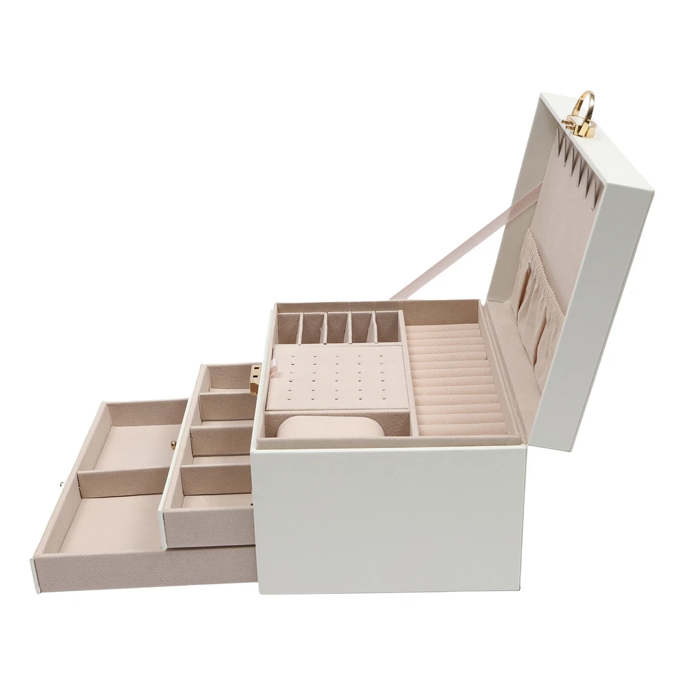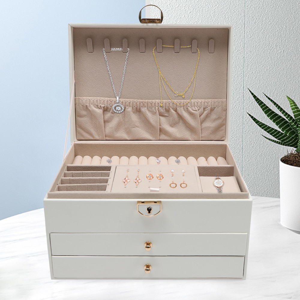 Specification Color: White Material: PU, Velveteen, Zinc Alloy Shape: Rectangular Style: Modern Surface Treatment: Electroplating Process Number of Tiers: 3 Target Audience: Women, Men, Boys, Girls Net Weight: 1.2kg/2.6lbs Gross Weight: 1.5kg/3.3lbs Package Size: 25*19*15.5cm/9*7*6inch Product Size: 23*17*13.5cm/9*6.7*5.3inch Package Included 1* Jewelry Box 1* Key Notes 1.Please wipe it with a soft cloth for daily care and keep it away from moisture. 2.Please allow the slight color difference caused by the shooting light and 1-3cm error due to manual measurement, and make sure you do not mind before ordering. 3 Tier Watch Box Jewelry Organizer Case Holder Bracelet Display Case with Drawer Welcom to yybshop06 Description To Well Classify Jewelry While Keeping Them in Order, This Jewelry Box with Three Layers Is Your Ideal Choice. the Box Treasures Not Only the Valuables but the Excellent Old Days and Memories. Wake up in the Morning and Dress up As You Please, Bringing You a Beautiful Mood. Key Features Premium Material: the Pu Is Odorless , Moisture-proof , Waterproof , and Can Resist Shock and Deformation, Allowing This Product to Be Used for a Long Time. Large Storage Space: Designed with Three Tiers of Multiple Compartments, 8 Built-in Hooks, and a Storage Bag, This Watch Box Offers Plenty of Space for Sorted Storage to Suit Most Watches and Jewelry on the Market to Simplify Your Lifestyle. Modern Style: the Whole Jewelry Box Is Very Smooth and Square with Excellent Touch and Exquisite Stitching Making the Product Full of Texture Enhance Your Daily Life: Enjoy Having Your Watches and Jewelry Ready for the Day, As You Choose the Perfect Piece for Every Occasion and Different Mood. What’s More, It Can Be Effortlessly Placed in Any Bedroom or Closet Without Occupying Much Space, or Have It Become the Centerpiece of Your Pride in Your Office or Personal Space. Lockable Design: the First Tier Can Be Locked to Prevent Your Items from Being Stolen or Lost. Full Pull-out Drawer: the Full Pull-out Design of the Drawers Display All the Jewelry and Make It More Convenient for You to Get It. A Great Gift: It Combines Timeless Design Elements with Unmatched Practicality, and Is an Ideal Choice for Gifts. You Can Present It to Your Family, Friends, Colleagues, Etc for New Year, Birthday, Valentine's Day, Wedding, Christmas, and Father's Day. Guaranteed Customer Service: We Are Committed to Providing Quality Products and Services. If You Have Any Questions, Please Feel Free to Contact Us. We Will Reply As Soon As Possible and Solve the Problem for You. Details Velveteen Lining: the Soft Velveteen Lining Is Anti-slip and Comfortable to Touch so That the Valuables Are Better Cared for. Durable Hardware: the Hardware Is Made of High-quality Zinc Alloy with an Ele ctroplating Process , so It Can Resist Wear, Corrosion, and Rust. Application It Can Be Mainly Used to Store Watches and Glasses, As Well As Bracelets, Necklaces, Earrings, Rings, Brooches, and Other Accessories. It Is Also a Great Gift for Your Mom, Wife, Husband, Daughter, or Girlfriend. Specification Color: White Material: PU, Velveteen, Zinc Alloy Shape: Rectangular Style: Modern Surface Treatment: Electroplating Process Number of Tiers: 3 Target Audience: Women, Men, Boys, Girls Net Weight: 1.2kg/2.6lbs Gross Weight: 1.5kg/3.3lbs Package Size: 25*19*15.5cm/9*7*6inch Product Size: 23*17*13.5cm/9*6.7*5.3inch Package Included 1* Jewelry Box 1* Key Notes Please wipe it with a soft cloth for daily care and keep it away from moisture. Please allow the slight color difference caused by the shooting light and 1-3cm error due to manual measurement, and make sure you do not mind before ordering. Payment Delivery details Terms of sales About us Contact us Payment We accept ebay payment 。 Fees such as import duties, taxes are not included in the item price or shipping costs. These charges are the buyer's responsibility. Delivery details Shipping: 2-9 working days to: USA Terms of sales We maintain high standards of excellence and strive for hundred percent customer satisfaction. Feedback is very important to us. We hope that you contact us immediately before you give neutral or negative feedback, so that we can address your concerns. It is impossible to address issues if we do not know about them! About us Your satis faction is our ultimate goal. We work hard to earn your trust and future business. Our certified technicians have tested each item before shipping. The unit comes with 1 year limited warranty on all manufacturing defects. a) If you receive a defective item, you may return it or ask for a discount. Please contact us within 14 days after you receive the package. b) What you returned must be intact and in its original packaging as re? u. Customer is responsible for shipping costs of the returned item. c) We will cover the cost of shipping back t with the shipping rate indicated in the registration page. We will send you a new unit or refund the full payment you paid. Thank you. Contact us Business Hour Business Hour: Monday To Friday: 8:30 AM to 5:00 PM (Beijing China time) Due to time zones, our reply to your questions may not be immediately. But within above working time, we will reply your email within 24 hours. If it's non-workdays, please kindly be patient and wait till Monday. Please contact us with ebay message. Please feel free to contact us if you have any questions. Monday To Friday: 8:30 AM to 5:00 PM (Beijing China time) Due to time zones, our reply to your questions may not be immediately. But within above working time, we will reply your email within 24 hours. If it's non-workdays, please kindly be patient and wait till Monday. Please contact us with ebay message. Please feel free to contact us if you have any questions. Features ★Nice and Practical, High Quality Packaging★ Brand Unbranded Type Jewelry Box Color White Material PU, Velveteen, Zinc Alloy Shape Rectangle Style Modern Surface Treatment Electroplating Proce