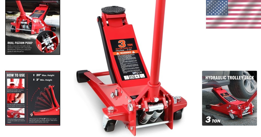 Hydraulic Trolley Floor Jack Alloy Steel 3 Ton Capacity Vehicle Service ‹ › ‹ › ‹ › ‹ › ‹ › ‹ › ‹ › ‹ › ‹ › Hydraulic Trolley Floor Jack -Alloy Steel 3 Ton Capacity Vehicle Service Features: High-quality construction with rigorous testing for maximum strength and durability. Impressive 3 ton (6,000 lb) capacity. Minimum lifting height of just 3 inches and a maximum height of up to 20 inches. Equipped with a dual piston pump for a swift and effortless lift. Built-in overload protection with a dependable safety release valve to prevent damage or injury. Large saddle with a rubber pad for enhanced stability and vehicle protection. Heavy-duty steel construction ensuring exceptional rigidity and stability. 360-degree swivel casters and large steel casters for smooth maneuverability. Benefits: Designed for rapid lifting in garage service and industrial environments. Portable and easy to mobilize for your convenience. Stability features safeguard both your vehicle and the jack itself during use. Reliable overload protection enhances safety during heavy lifting tasks. Why choose our Hydraulic Trolley Floor Jack? This is not just a tool; it’s the result of meticulous research and development, ensuring that every jack meets the highest standards of quality and performance. Whether for personal garage use or heavy-duty industrial applications, this hydraulic trolley jack delivers steady and reliable service when it matters the most. Invest in a tool that combines safety, efficiency, and durability – elevate your lifting experience and order your Hydraulic Trolley Floor Jack today! Shipping Free & Fast Shipping - We offer free shipping to most of the USA with a normal delivery time of 3-7 days. However, due to the current situation, additional delivery time (up to 3 weeks) may be required for some items. Alternative Carriers - We may use alternative carriers (e.g. USPS, FedEx, UPS, etc.) to ensure your package arrives safely and on time. Due to the use of multiple carriers, we are unable to provide a tracking number automatically. Handling Time - Orders are processed and shipped within 1-2 business days of receiving cleared payment. Shipping Restrictions - Shipping to Alaska, Hawaii, Puerto Rico, Guam, and other US territories may incur shipping charges or delivery restrictions. Please contact us before ordering, or your order can be refunded/cancelled. State Restrictions - There may be restrictions based on your state of purchase. For example, certain items may not be shipped to California due to state regulations. Contact for Tracking Updates - If you require tracking updates or have any concerns about the delivery of your order, please feel free to contact us, and we will be happy to assist you. Return 30-Day Hassle-Free Returns - We want you to be completely satisfied with your purchase. If you are not, you can return the item within 30 days of receiving it for a full refund or exchange. Easy Return Process - To start a return, simply contact us and we will provide you with a prepaid return shipping label and detailed instructions. Restocking Fee - There are no restocking fees for returns. However, the buyer is responsible for return shipping costs if the return is not due to a seller's error. Refund Processing Time - Refunds will be processed within 5 business days of receiving the returned item in its condition. Payment We accept all major credit cards, PayPal, and Apple Pay for your convenience. Your payment information is secure and encrypted to ensure a safe and seamless transaction. Please complete your payment within 3 days of purchase to avoid any delays in shipping. Feedback Your feedback is extremely important to us. We strive to provide the best products and customer service possible. If you are satisfied with your purchase, please take a moment to leave us a positive review. If you have any concerns or issues with your order, please contact us before leaving negative feedback. We are committed to resolving any problems and ensuring your satisfaction. Contact Us If you have any questions or concerns, please feel free to out to our customer support team. You can contact us through the eBay messaging system. We are available Monday to Friday, 9:00 am to 5:00 pm EST, and we will do our best to respond to your inquiry within 24 hours. Buy it now and enjoy a pleasant shopping experience! Manufacturer Part Number: Hydraulic Trolley Jack Unit Quantity: 3 Ton Type: Floor Jack Number of Pieces: 1 Drive: Hydraulic Material: Alloy Steel Capacity per Stand: 6000lbs. Minimum Height: 3 Inches
