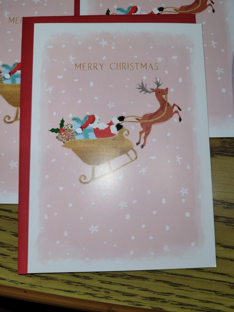 Home3 UK Christmas Greeting Cards Santa Fun Cute Pink Design