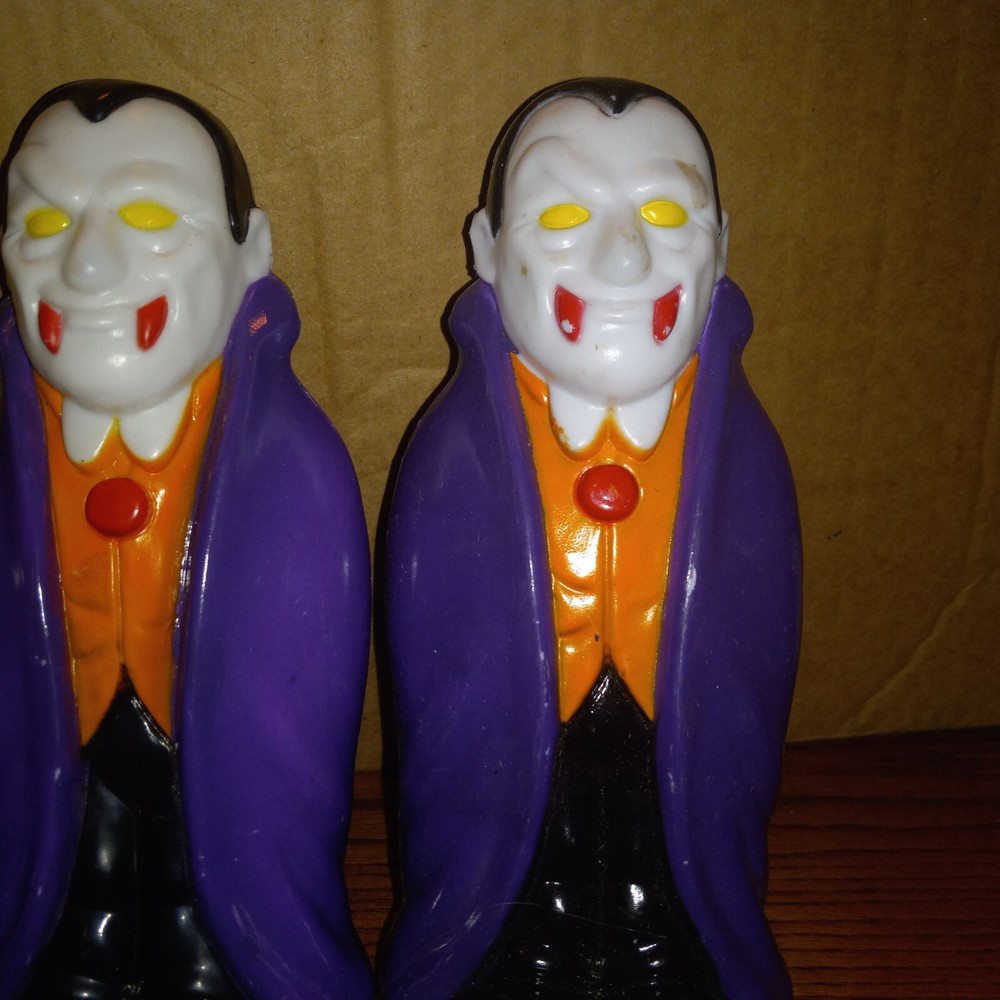 3 VTG 1990s Empire General Foam Dracula Vampire Blow Mold Pathway Light Topper Brand: Empire/General Foam Item: Blow Mold Pathway Light Topper Year: 1998 Measures Approx: 9" Colors: Multi-Colors Includes: 2- General Foam Dracula Vampires, 1 Empire Dracula Vampire Used Condition Has Some Marks On iT Some Paint Loss In Different Places On The Item (See Pictures)