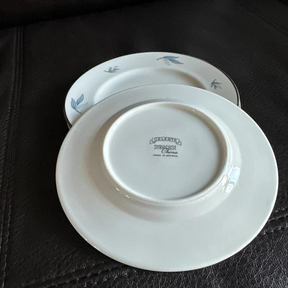 Add a touch of vintage elegance to your table setting with this beautiful three-piece set of Syracuse China CELESTE plates. The ivory blue color and intricate pattern make these round plates perfect for formal occasions or everyday use. The set includes a dessert plate and a bread plate, both featuring the stunning CELESTE design. Crafted from high-quality ceramic, these vintage plates are durable and easy to clean. The white blue color and formal style add a touch of sophistication to any table setting. These plates are perfect for serving bread and desserts and are sure to impress your guests. Add a touch of vintage charm to your dining experience with this stunning set of Syracuse China CELESTE plates.