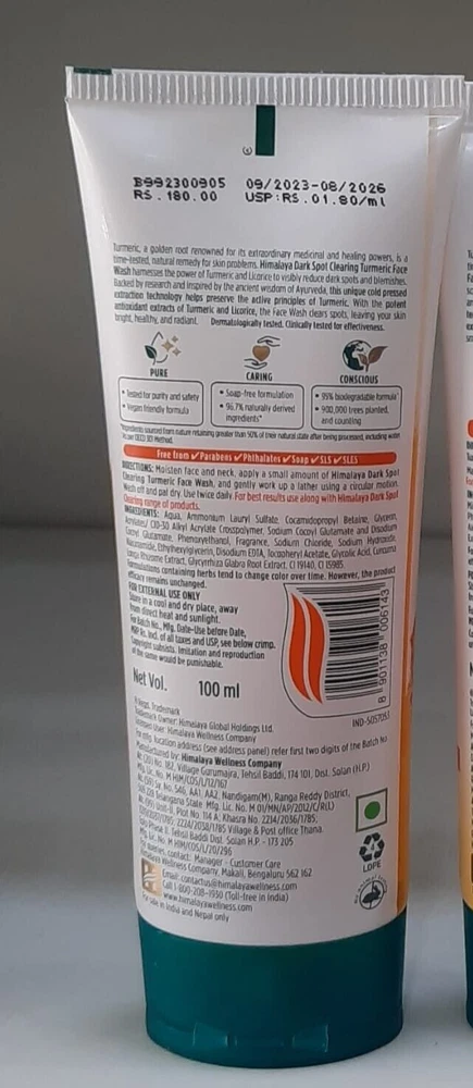 3 X Himalaya Dark Spot Clearing TURMERIC FACE WASH 100 ml NEW LAUNCH FREE SHIP
