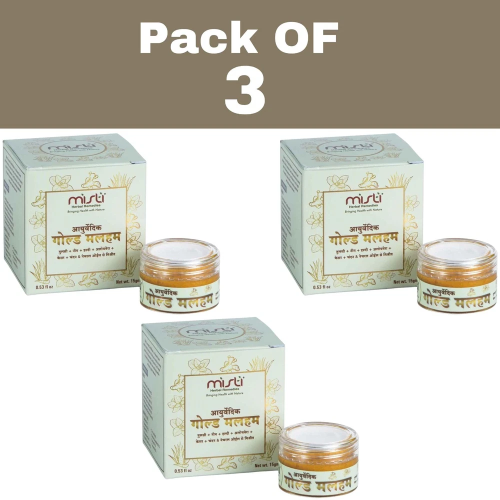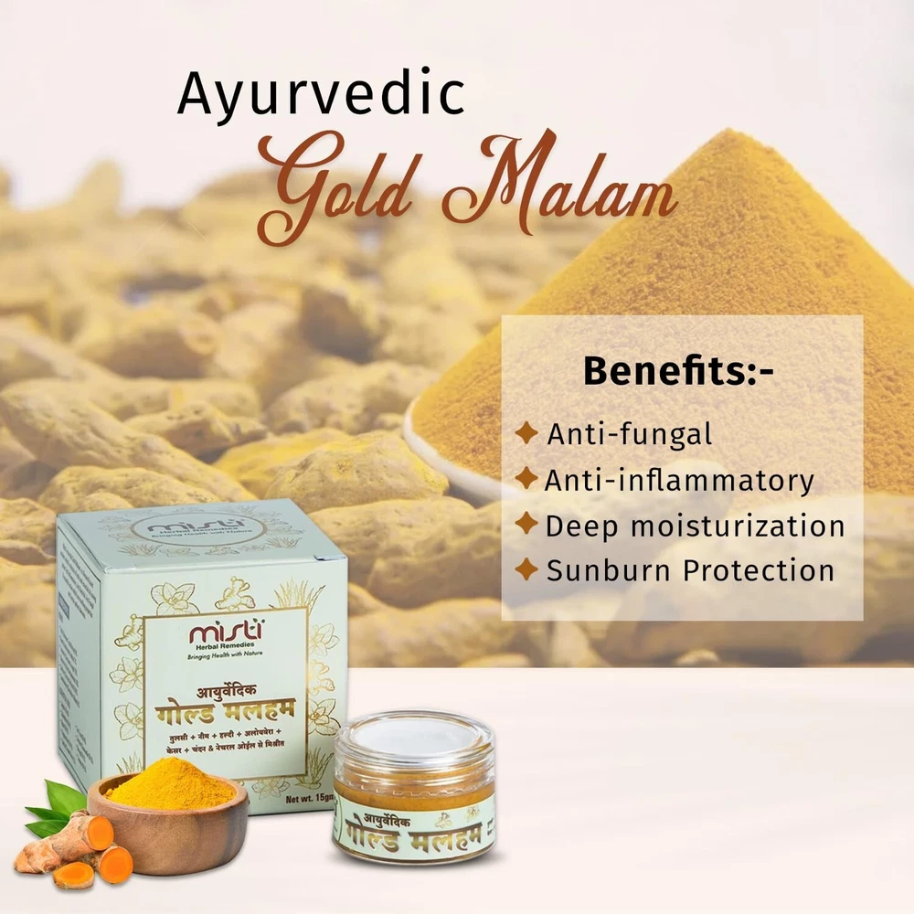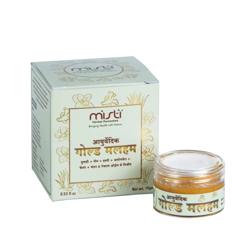 Natural Herbs Misti herbal is one of those top leading companies which solely believes in the quality & purity of products made with 100% natural ingredients. Quality Tested Exquisite and reliable, our quality-tested gold malam is a symbol of purity and craftsmanship. Benefits he Rose oil present in Misti’s Gold Malham gives exfoliating and deep moisturization properties. It also helps in hyperpigmentation. For External Use only One-stop solution for all kinds of skin problems including, itching, rash, allergies, and skin inflammation.