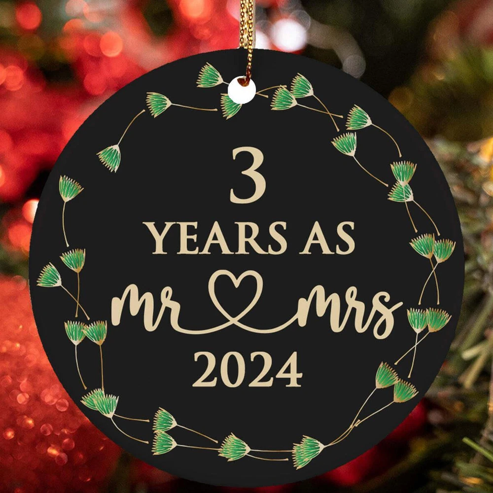 3 Years As Mr Mrs Ornament 3rd Anniversary Christmas Gift Tree Decor Hanging