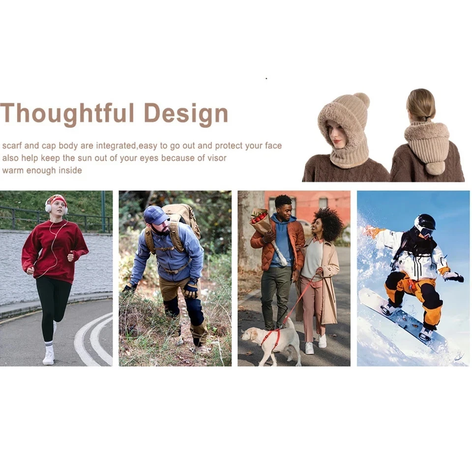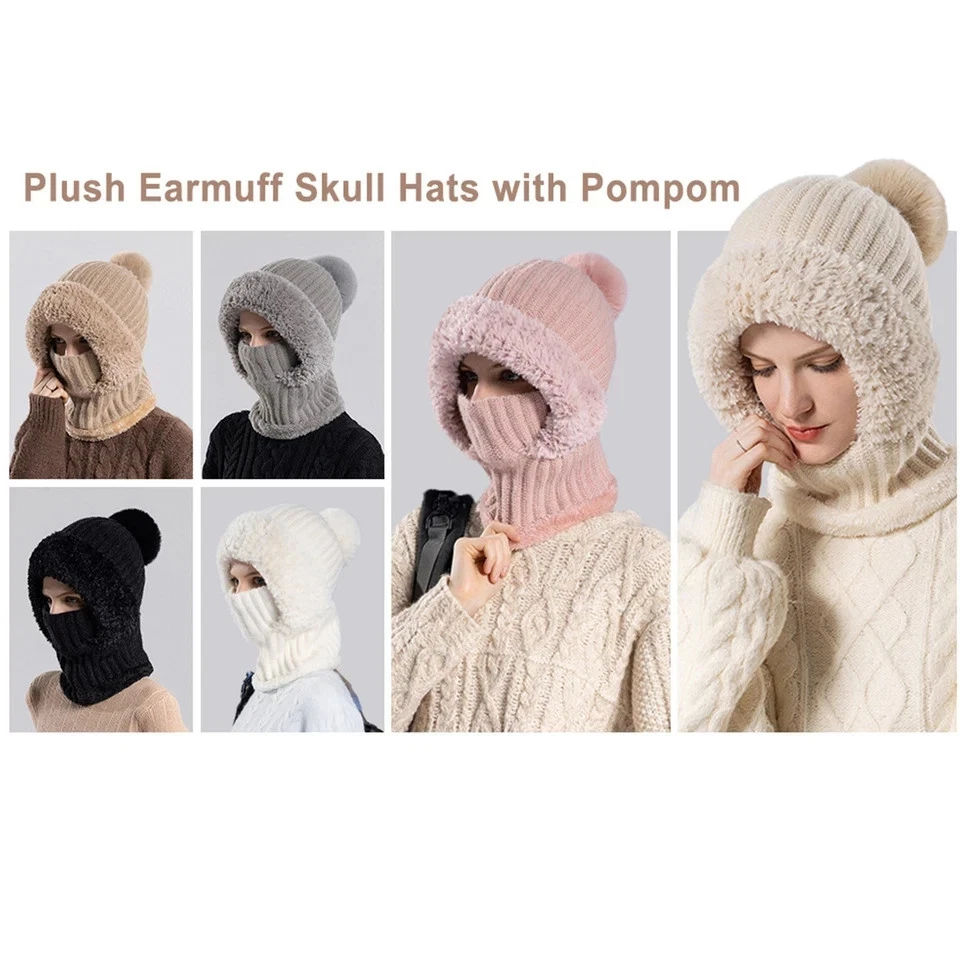 3 in 1 Womens Knit Beanie Hat Fleece Lined Winter Scarf Mask Set Snow Caps Gifts Description