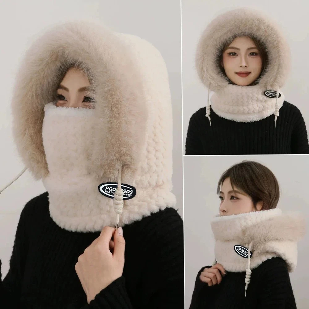 3 in 1 Womens Knit Beanie Hat Fleece Lined Winter Scarf Mask Set Snow Caps *****