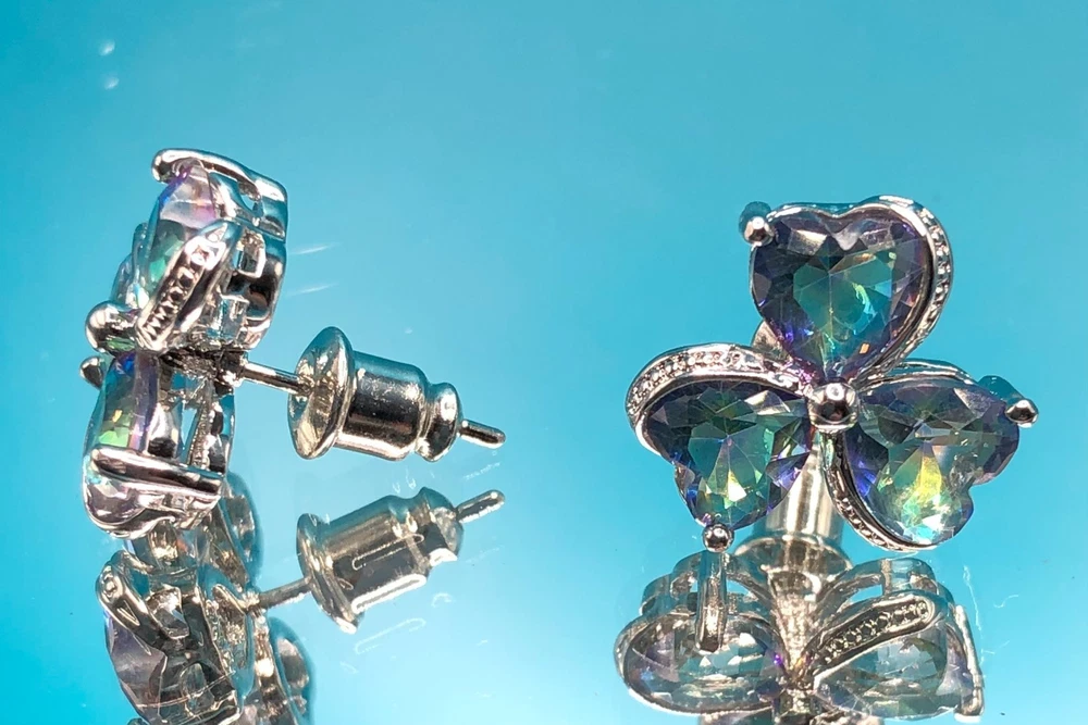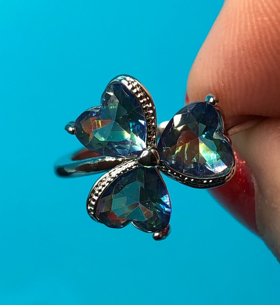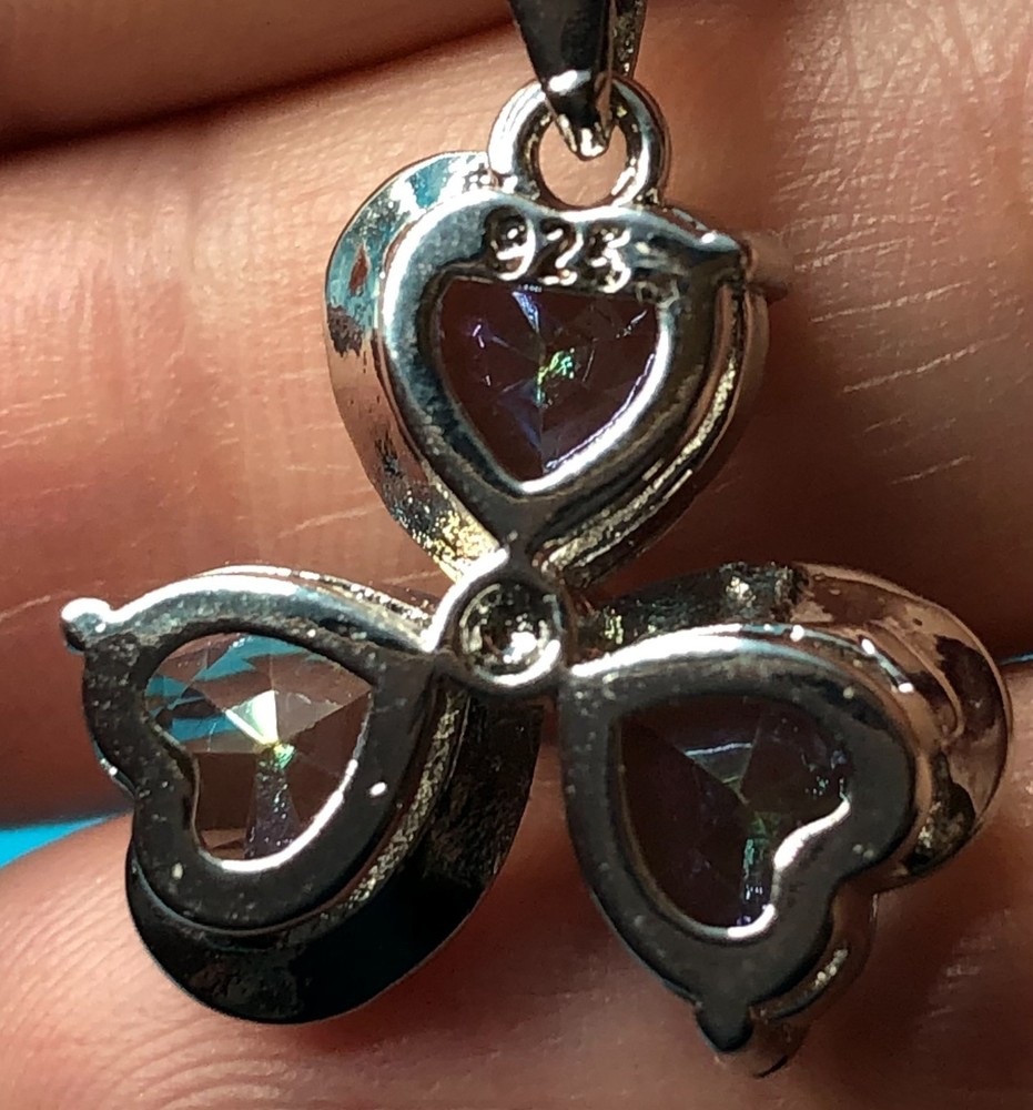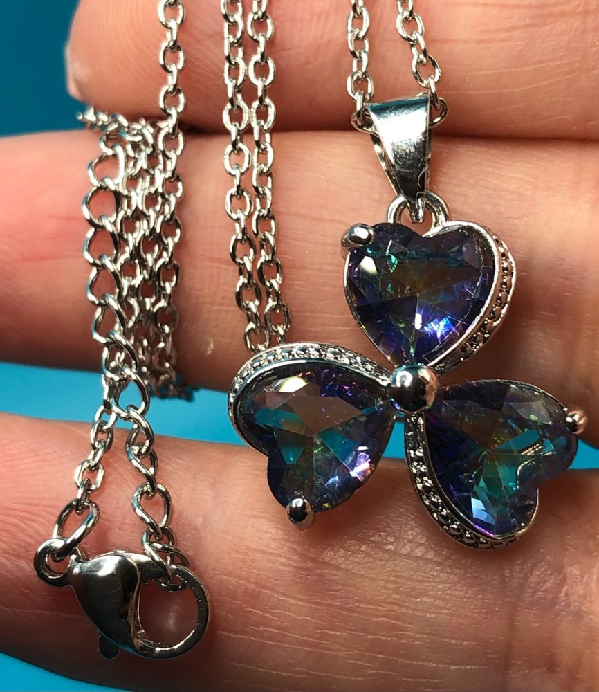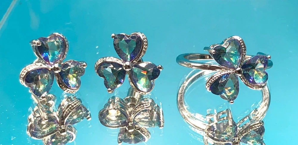 This 3 pc set features a stunning Mystic Topaz ring in size 8, a pendant on a 20" necklace, and matching earrings, all crafted from 925 sterling silver. The set is designed with a clover heart shape and multicolor Mystic Topaz stones, making it perfect for occasions like Mother's Day, Christmas, birthdays, and Valentine's Day. The jewelry set is not only elegant and beautifully crafted but also comes with a seller warranty, adding to its appeal for buyers looking for high-quality fine jewelry with a touch of luck-themed design. Sold and shipped right here in the USA ! No long waiting