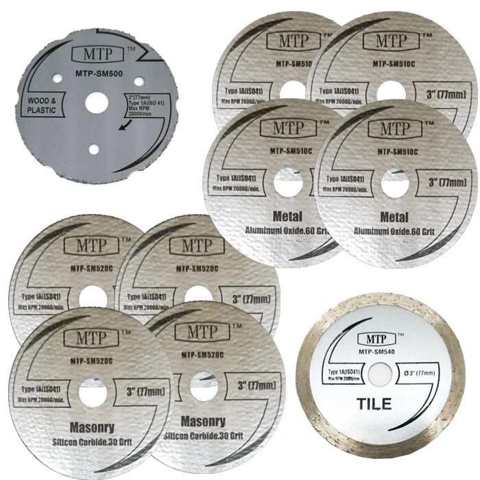 Description Pack of 10 3 " Cutting Wheel 4- SM520 Masonry Blade 4-SM510 Metal Blade 1-SM500 Wood PLastic Blade 1-SM540 Diamond Tile Blade Specification 3" 77mm in diameter Arbor: 7/16" , 11.1mm Brand: MTP RPM: 20,000 Fit for Dremel 3" Series compact Saw Max , Ridgid 18v 3" Cut-off Tool Fit 3" Milwaukee 2522-20, Ryobi PSBCS02 One+ (need 7/8" bottom Adapter ) Fit Ridgid 18V 3" R87547B Cutoff Fit Dewalt XR 3" 20V DCS438B (need 7/8" bottom Adapter ) Shipping Free USA Shipping w/ tracking Guarantee We provide 14 days exchange or return if our products is not fit in your tool or defect.Please email us for detail. Froo www.froo.com | Froo Cross Sell, Free Cross Sell, Cross promote, eBay Marketing, eBay listing Apps, eBay Apps, eBay Application