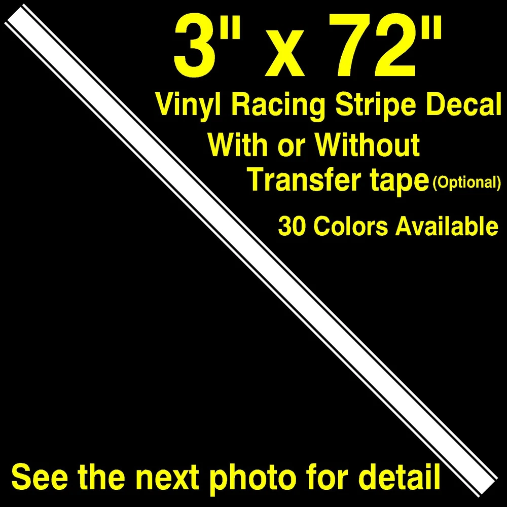 Sale for 1 die cut single color vinyl decal without background and borders. Total Size: 3" wide x 72" Middle Stripe: 2" wide x 72" long Side Stripes: 0.25" wide x 72" long Spaces between stripes: 0.25" The trimming might be required for edges and gaps between doors. Description The decal is made by cutting on any single color vinyl. The background will be trimmed off. The background of the graphic on the pictures will be the surface color that the decal is applied. The vinyl decal will last 6 years for outdoor with waterproof and weatherproof when applied with the proper method. It will last much longer for the indoor use. The decal is perfect for most smooth surfaces such as window, mirror, painted wall, laptop, vehicle body, and etc. Shipping The paid item will be sent in 2 business days by USPS First-Class Mail and will be arrived in 3 to 7 business days. Return Policy 100% Customer satisfaction guaranteed with full refund. If the decal is defective or damaged upon arrival , notify us immediately. The item will be reshipped or refunded if the item is returned with the same package. ** We are not responsible for the item that is damaged while installing.** Installation 1. Cleaning surface - Windex or rubbing alcohol, cotton clothes or paper towel 2. Masking tape or painting tape - to hold the decal 3. Squeegee or something similar as a credit card 4. Optional tape ruler - to put the decal in the right position 5. Optional scissor or cutting tool 6. Optional wet application - water spray mixed with dishwashing detergent (The ratio of 1/2 gallon of water to 1 drop of detergent) 7. The proper temperature of the surface to install is 60°F to 90°F. 8. No pressure wash for a week. Let the sticker activate on the surface. 9. No direct scraping on winter time. 10. Get some more tips how to install on YOUTUBE typing in " Decal installation" or " Sticker installation"