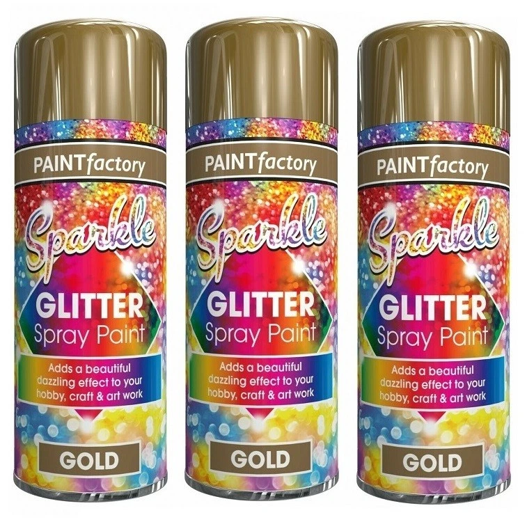 3 x GOLD GLITTER SPRAY PAINT 200ML AEROSOL FOR XMAS CHRISTMAS WOOD METAL PLASTIC