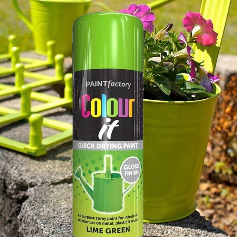 3 x LIME GREEN GLOSS FINISH 400ML ALL-PURPOSE SPRAY PAINT FOR METAL WOOD PLASTIC