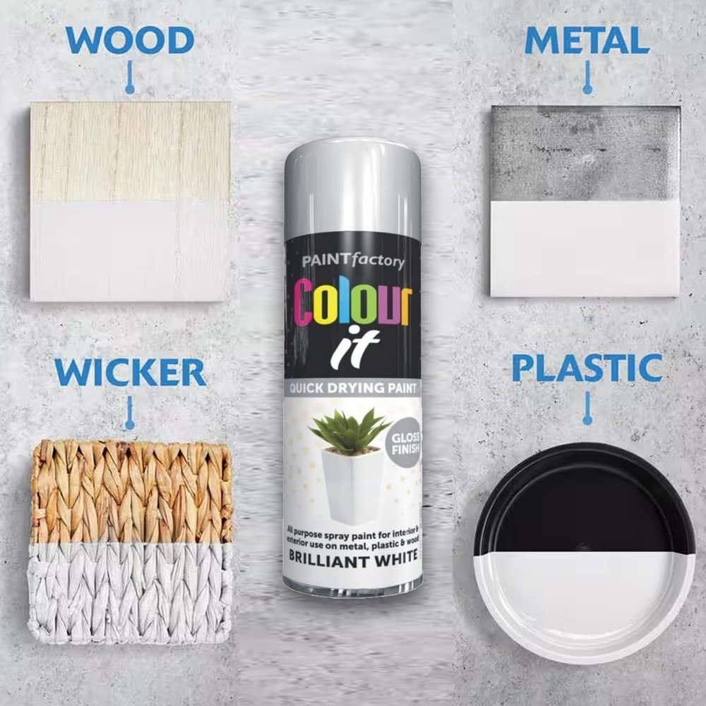 3 x WHITE GLOSS ALL-PURPOSE AEROSOL SPRAY PAINT 250ML FOR METAL WOOD PLASTIC NEW