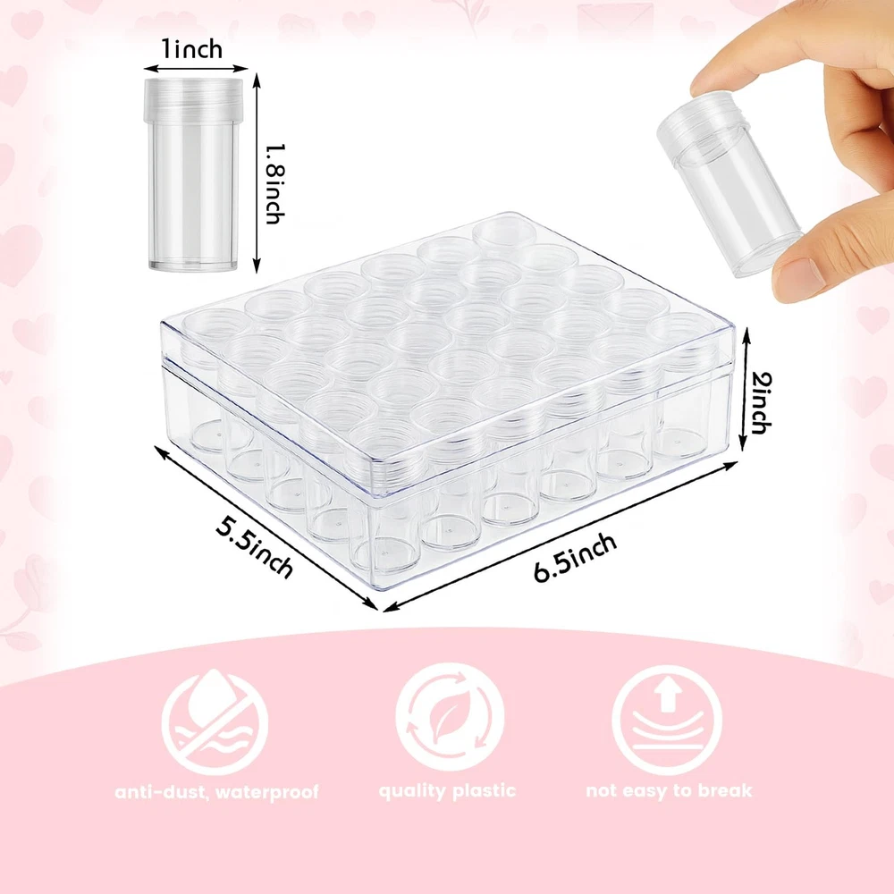 30 Clear Plastic Bead Storage Pot Jars Containers w/ Box for Craft Supplies Warm Tips: The product is a mini product, please pay attention to the actual size of the page. If the product you received has packaging damage, please do not hesitate to contact our customer service to return it. PACKAGE INCLUDED - 1 X Plastic Bead Storage Container ( 30 Pieces Storage Jars with Lids Included ). EFFECTIVE STORAGE PERFORMANCE - Our diamond painting storage containers measures 6.3 X 5.3 X 1.4inch, Small Bead Jar Box is 1 inch in diameter and 1.1 inch in height. Our diamond painting storage container is anti-dust, waterproof, moisture-proof and not easy to break. Clear enough that you can see everything inside and you can identify what you are looking for quickly and easily. Effectively keep your crafting area neat and clean and all your supplies in one place. PREMIUM QUALITY - Our bead organziser is made of high-grade plastic, non-toxic and odorless. The surface of this box is smooth, no rough edges, lightweight and durable, easy to carry and store. This bead storage box has passed a rigorous testing and certification process, 100% safe to use. PERFECT DESIGN - Our bead storage containers with lids is detachable. The small jar can be pull out from the retangle box and you can bring it to anywhere you like. The small jar is paried with a screw top lid making sure content remains safe and stored. You also can stick a tag on the lid for easier identifying. WIDE APPLICATIONS - Not only for beads, our diamond painting storage container is also perfect for glitters, nail crystals, jewelry, necklaces, rings, diamond painting essentials, nail art embellishments, make up, tablets, pills, earrings, chool and office supplies, arts and crafts needs, playing pieces, powder and other little gadgets. It also can be used as a travel kit to store some personal care products like hair gel, skin care products and wash supplies for travelling. Embroidery Diamond Storage Box, 30PCS Small Clear Plastic Bead Containers with Lid for Jewelry Painting DIY Art Craft Rhinestones Sewing Cosmetic Nail Glitter Powder PACKAGE INCLUDED 1 x Plastic Bead Storage Container ( 30 Pieces Storage Jars with Lids Included ) SPECIFICATIONS Material: PS Size: storage box: 6.3" x 5.3" x 1.4"; little jar: 1"(diameter), 1"(height) Color: transparent NOTICE The screw top lids of the jars are round and please use the tags with matched size to mark your jars. ABOUT :)Our aim is to serve people who have a life attitude and value, and to create a part of a better life for them. :)The simple, beautiful design concept allows both romantics and minimalists to find exciting products in Store. Shipping We offer FREE shipping on all orders! We ship within Three business days of payment, usually sooner. We use a selection of shipping services such as UPS, FedEx, USPS etc. We only ship to the lower 48 states, no APO/FPO addresses or PO Boxes allowed. Local pickups and combined shipping options are not provided at this time. Return You can return a product for up to 30 days from the date you purchased it. Any product you return must be in the same condition you received it and in the original packaging. Please keep the receipt. Payment We accept payment by any of the following methods: PayPal Please pay as soon as possible after winning an auction, as that will allow us to post your item to you sooner! Feedback Customer satisfaction is very important to us. If you have any problem with your order, please contact us and we will do our best to make you satisfied. Contact Us If you have any queries, please contact us via ebay. We usually respond within 24 hours on weekdays. Please visit our eBay store to check out other items for sale! Thank you for shopping at our store.