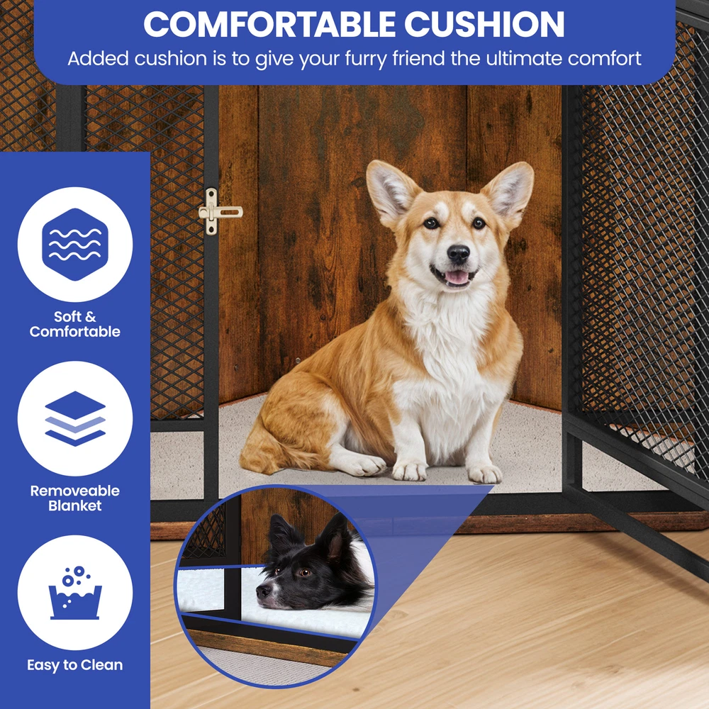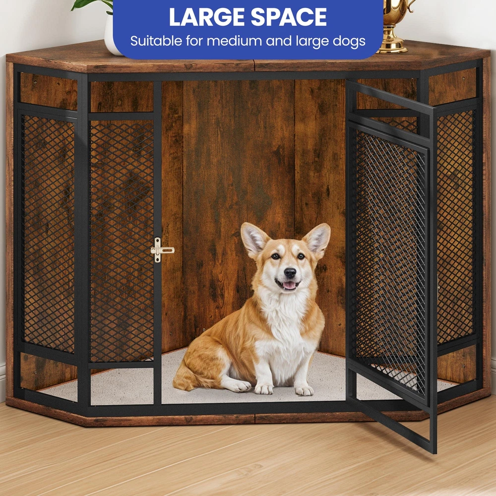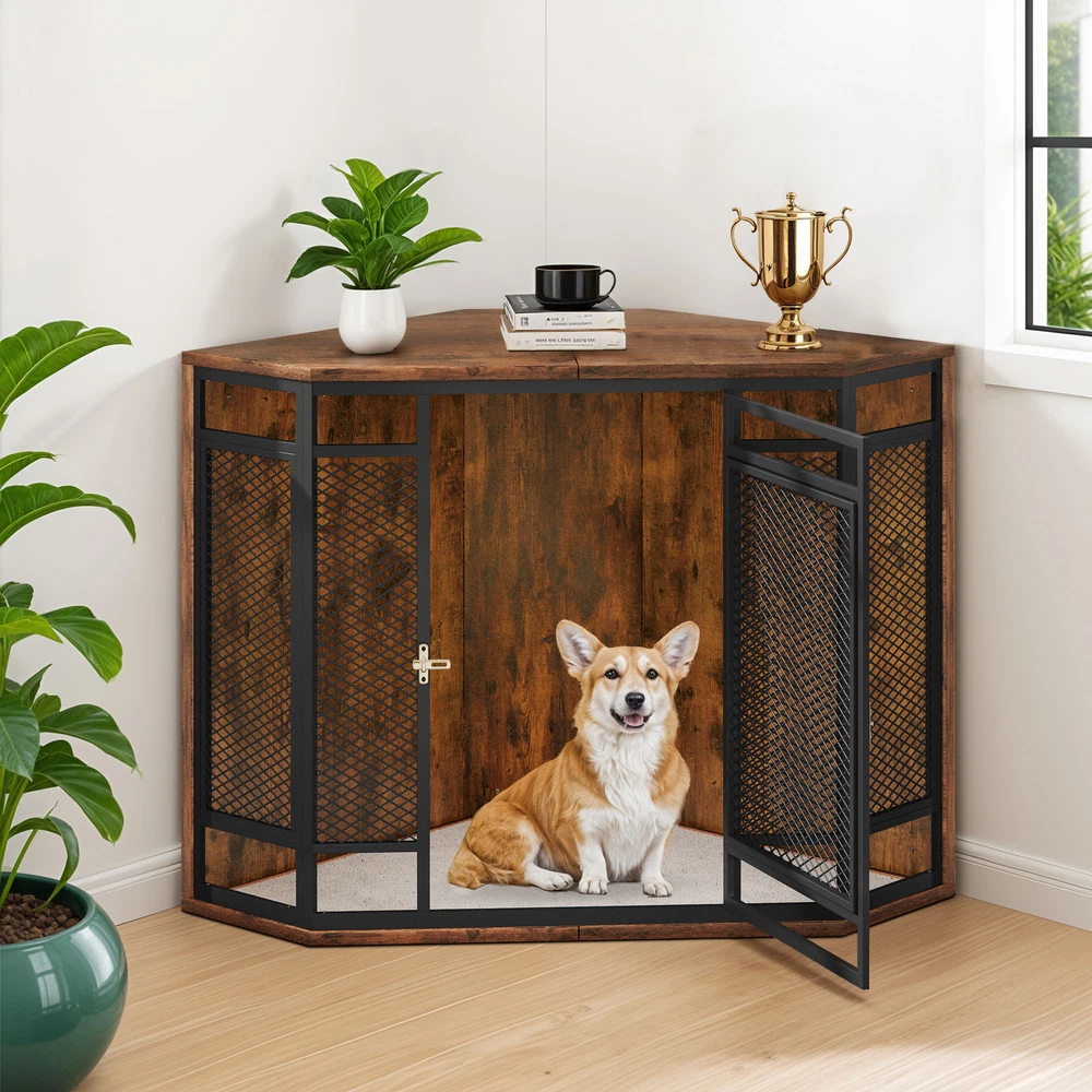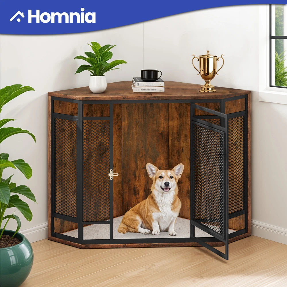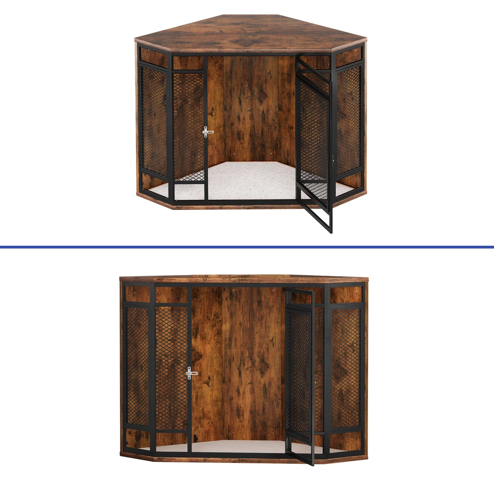 30" Dog Crate Corner Pet Kennel Cage Iron Frame Brown Removable Blanket Lockable Product Description NOTE: Professional Installation would be Highly Recommended. Description: 1. Color : Brown 2. Features : Non-Slip Cushion, Removable Blanket, Secure Lock 3. Material : Iron, MDF Board, Steel, and Wood 4. Mounting : Free Standing 5. Room : Bedroom, Kitchen, and Living Room 6. Shape : Triangular Features: Built to Last with Premium Materials Made from sturdy iron , MDF board , and wood . Our kennel offers exceptional durability and style. Our robust construction supports up to 110 lbs . Providing a stable and safe space for small to medium breeds. This blend of functionality and aesthetics ensures long-lasting use and timeless appeal. Ultimate Safety and Security Features Our secure lock mechanism ( padlocks not included ) ensures your pet stays safe and sound when you’re away or during nighttime. Designed to prevent accidental openings, it gives you confidence that your pet is protected at all times. Enjoy worry-free moments knowing your furry friend is secure. Comfortable and Non-Slip Design Our kennel features a non-slip cushion that keeps your pet cozy and secure. Preventing accidental slipping during play or rest. Our included removable blanket adds extra warmth and convenience. Making it easy to clean and maintain. Your pet will enjoy a comfortable and secure resting space every day. Versatile Placement and Easy Assembly With our freestanding design and compact dimensions ( 29.9"L x 52"W x 35"H ), our kennel fits seamlessly into your entryway, living room, or dedicated pet area. Our included assembly hardware and instruction manual make setup quick and hassle-free. Bring style and practicality to any room with minimal effort. Dimensions: 1. Maximum Weight Capacity : 110 lbs 2. Overall Dimensions : 29.9"L x 52"W x 35"H 3. Weight : 88 lbs Package Included: 1. 1x Medium Pet Kennel 2. Assembling Hardware Kits 3. Instruction Manual Book *) EXCLUDING PADLOCKS Shipping 1. Normally the item will be dispatched within 1 business day if payment is cleared before 12pm PST. 2. Please verify the correct shipping address in your PayPal account before making the payment. We only dispatch the item to the address that is sent to us at the time of checkout. 3. We don't ship to Hawaii, Alaska, Puerto Rico, APO/FPO/PO Boxes. 4. We don't provide local pick-up service. 5. Normally we will use USPS, UPS, FedEx & LTL to dispatch items. Payment 1. We accept PayPal and credit card. 2. We will ship to the confirmed Paypal shipping address that is provided with the payment only. Return 1. 30 days Money Back Guarantee. 2. Please contact our customer service to receive a RMA form first if want to return the item. 3. All returned items MUST in new condition with the original package. Contact If has any problem, please contact us by sending an ebay message. Our customer service will resolve the problem as soon as possible. On Oct 11, 2024 at 06:48:00 PDT, seller added the following information: On Oct 13, 2024 at 23:15:51 PDT, seller added the following information: On Dec 21, 2024 at 09:34:54 PST, seller added the following information: