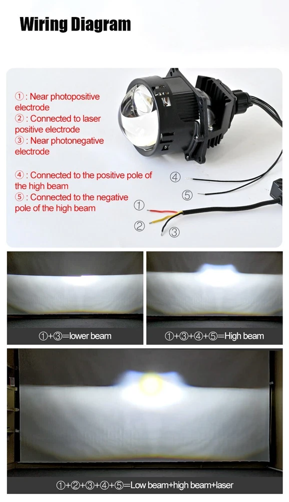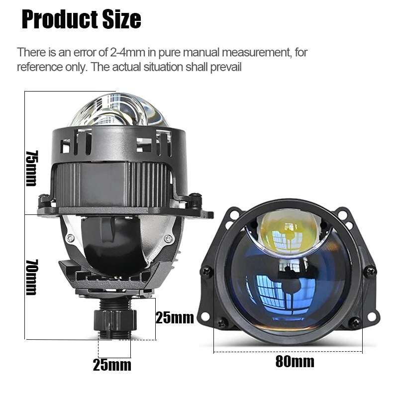 Hyperboloid lens optical design, with longer illumination distance and larger low beam angle,The irradiation distance reaches 1000M! Specification: 100% Brand New, never been used or installed Size:3.0 Inch Voltage:9V-16V Color Temperature:6000K Wattage:90W/Pair (Low beam). 110W/Pair (High beam),30W(LASER),140W/Pair (Low +High +Laser) Driver:Dual reflector, built-in LED driver, suitable for headlight follow-up Light Beam:LHD Product Description: Convex Glasses Lens:Hyperboloid lens optical design, with longer illumination distance and larger low beam angle,The irradiation distance reaches 1000M. Drivers:Digital LED drivers monitor fan speed for optimal heat protection and stable performance. LED chips:Made of high luminous efficacy LED chips,instant start without delaying, not only more efficiency and powerful but also energy saving. 50000 hours of continuous work with LED. Cooling System:Features a powerful cooling fan, with high quality ball bearings and a precisely engineered impeller. Ensure heat dissipation effectively, expose more light through the lens, improved the lens performance. Solenoid Motor:More powerful light in high beam and low beam, wide range of illumination, reduce traffic accidents. Long Lifespan:Special tail design of the lens, excellent cooling function, stable working performance,long lifespan. Installation:Same Installation Bracket As For Hella G3 G5/Koito Q5 Projector Lens. Warm Tips: 1.To save your precious time, please be free to contact us by ebay messages firstly if quality problems existing before any dispute or negative feedback left. Faster and effective solution will be offered via ebay messages. We will do our best to provide you with the best service. 2.If you are very dissatisfied with the quality and open the dispute in that case, do not choose [item not as described] reason. Please choose the following reasons: Just don't like it; Doesn't fit;Find a better price;No reason..Etc. We will also bear the return or exchange shipping postage. 3.If you receive a damaged package, take some pictures as proof, then reject it and contact us by ebay messages without hesitation before any dispute open.