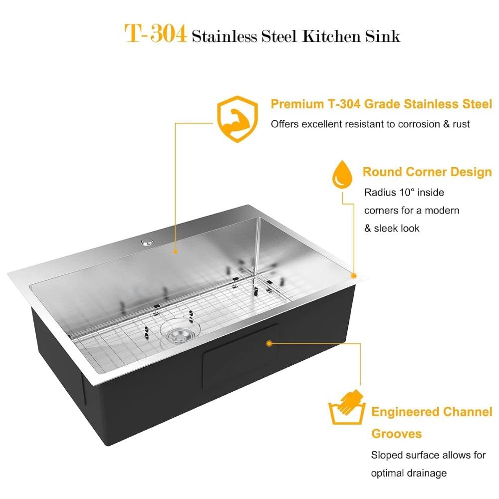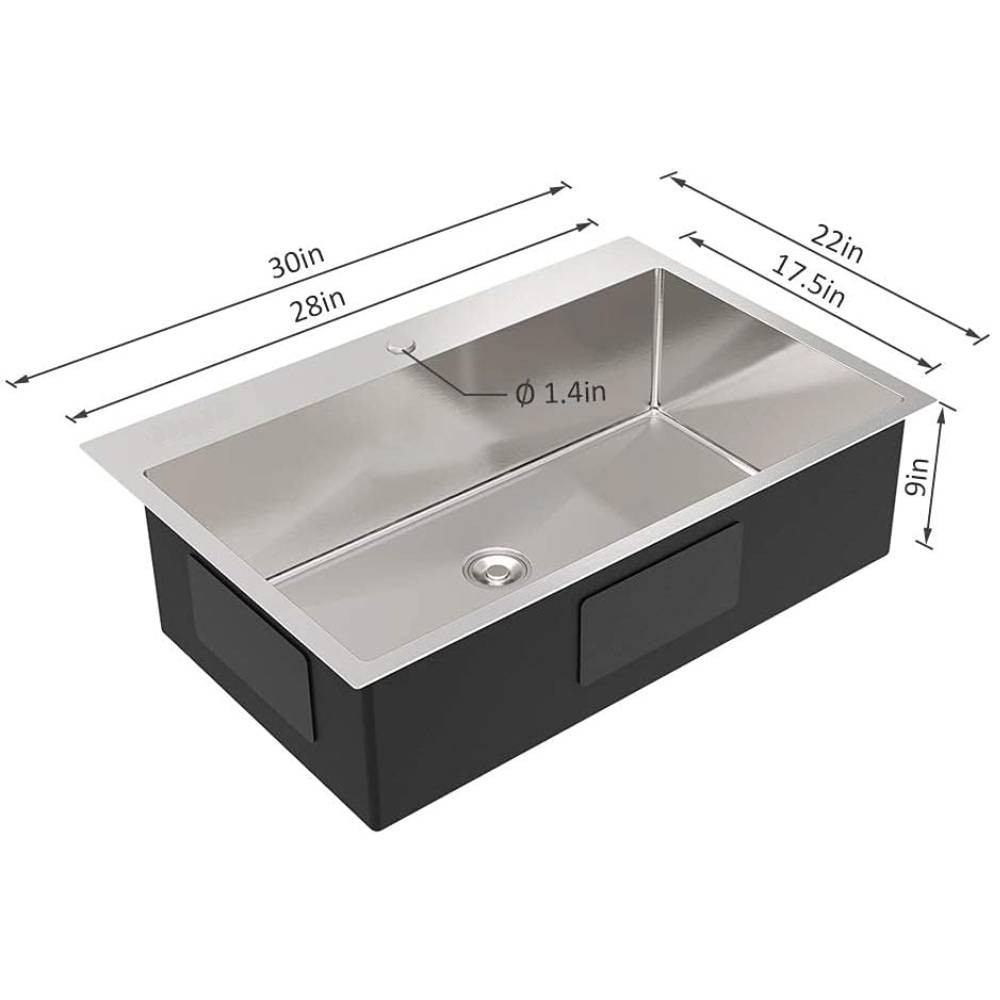 30 x 22 x 9 inch Single Bowl Sink Top Mount, Deep Basin & X-Drain Design Silver