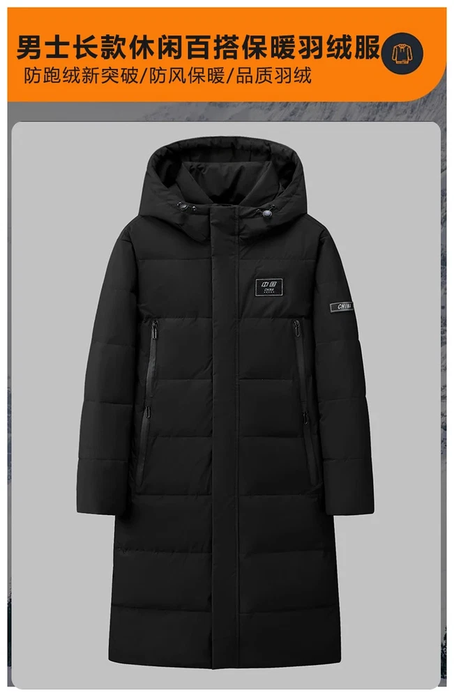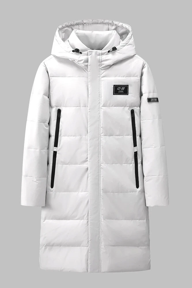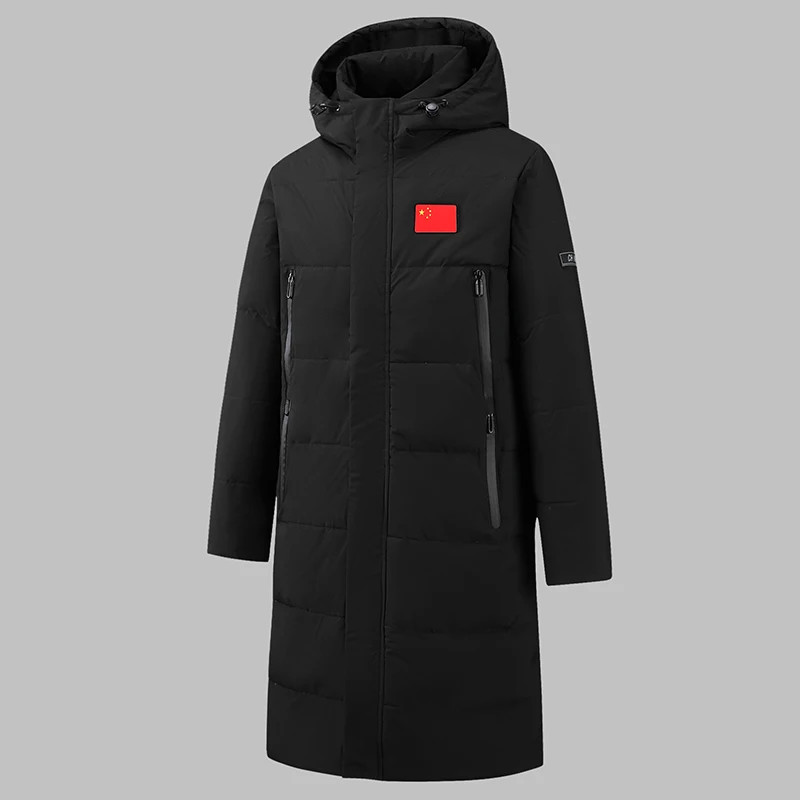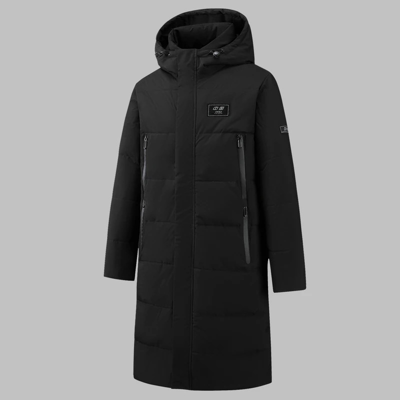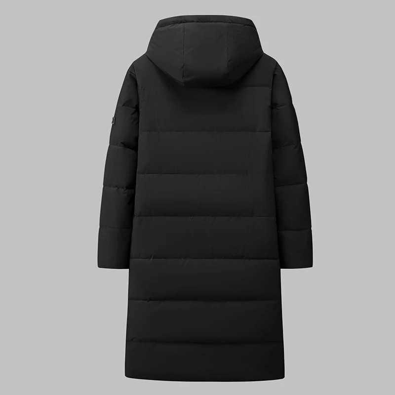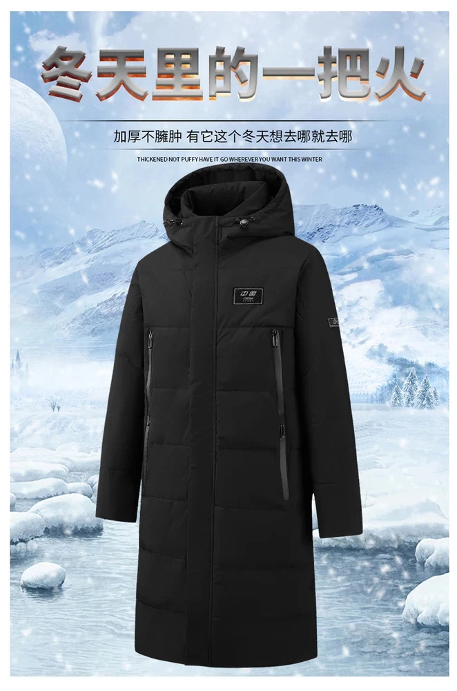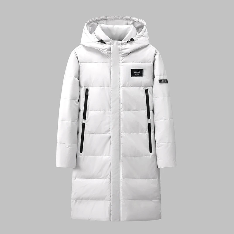 Men's Long Length Hooded Down Jacket Korean Style Slim Fit Winter Coat for Stude