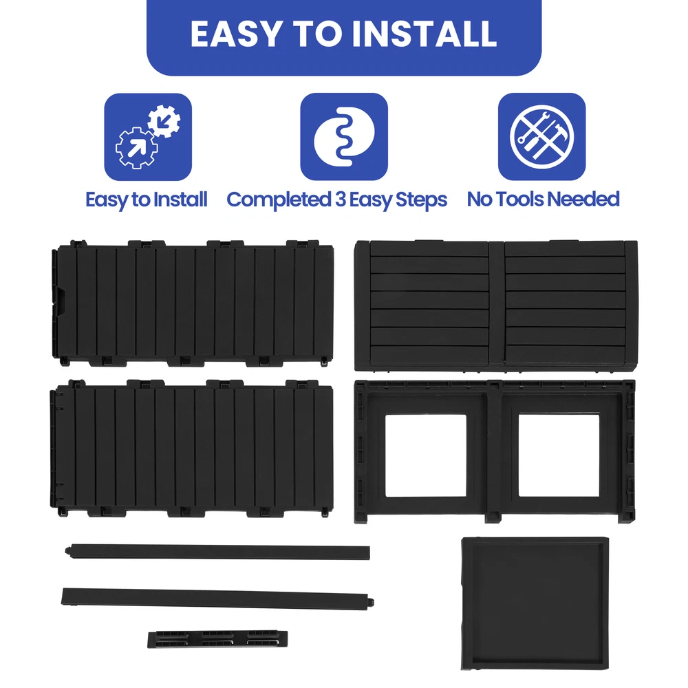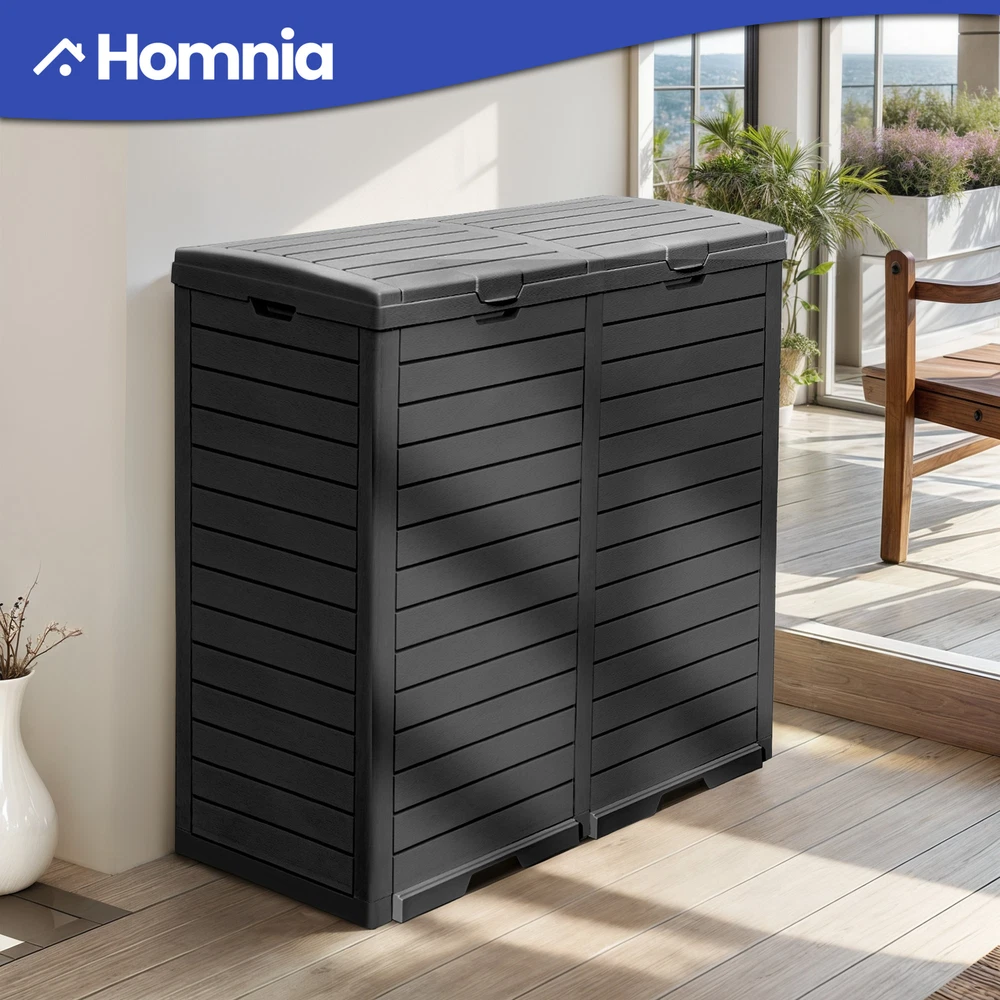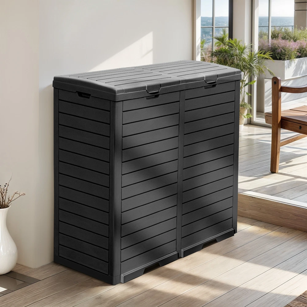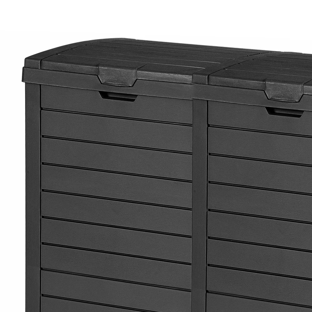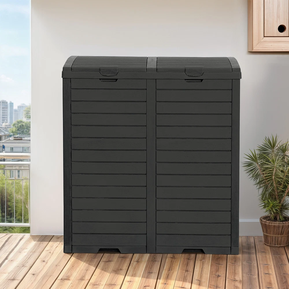 30" Outdoor Trash Bin 62 Gallon Storage Can Patio Kitchen Garden Waste Dual Tray Product Description NOTE: Professional Installation would be Highly Recommended. Description: 1. Color : Black 2. Features : Lockable Lid, Slideable Tray, Water/Weatherproof, With Handles 3. Material : Polypropylene and Resin 4. Mounting : Free Standing 5. Number of Compartments : 2 6. Room : Garden, Kitchen, Patio, etc 7. Suitable For : Food, General, Paper, and Plastic Features: Ample Capacity with Organized Compartments With a generous 62 lbs capacity and two compartments , our trash bin is suitable for storing food, paper, plastic, and general waste. It keeps waste sorted and neatly contained, making it an excellent choice for eco-conscious households and businesses. Our free-standing design adds to our versatility, fitting seamlessly into different spaces. Weatherproof and Durable Construction Crafted from polypropylene and resin . Our bin is designed to withstand outdoor elements like rain, sun, and wind. It maintains our sleek black finish and structural integrity over time, ensuring long-lasting use. Whether in your garden, patio, or garage, it stays strong in various conditions while looking modern and professional. Secure and Convenient Design Our bin's lockable lid ensures the safety and cleanliness of its contents, preventing spills caused by animals or weather. Our slidable tray adds an extra convenience layer, making waste sorting and disposal a breeze. Our lightweight yet sturdy build and ergonomic handles make it easy to move around wherever you need it most. Easy to Assemble and Use Our package includes all necessary assembling hardware kits and a clear instruction manual . Allowing for quick and hassle-free setup. At just 27 lb , it’s lightweight yet stable, ensuring effortless use and transport. Please note that padlocks are not included , giving you the flexibility to choose your preferred locking mechanism. Dimensions: 1. Capacity : 62 Gallon 2. Overall Dimensions : 30.7"L x 16.3"W x 33.9"H 3. Weight : 27 lb Package Included: 1. 1x Outdoor Trash Bin 2. Assembling Hardware Kits 3. Instruction Manual Book *) EXCLUDING PADLOCKS Shipping 1. Normally the item will be dispatched within 1 business day if payment is cleared before 12pm PST. 2. Please verify the correct shipping address in your PayPal account before making the payment. We only dispatch the item to the address that is sent to us at the time of checkout. 3. We don't ship to Hawaii, Alaska, Puerto Rico, APO/FPO/PO Boxes. 4. We don't provide local pick-up service. 5. Normally we will use USPS, UPS, FedEx & LTL to dispatch items. Payment 1. We accept PayPal and credit card. 2. We will ship to the confirmed Paypal shipping address that is provided with the payment only. Return 1. 30 days Money Back Guarantee. 2. Please contact our customer service to receive a RMA form first if want to return the item. 3. All returned items MUST in new condition with the original package. Contact If has any problem, please contact us by sending an ebay message. Our customer service will resolve the problem as soon as possible. On Feb 13, 2025 at 18:57:03 PST, seller added the following information: